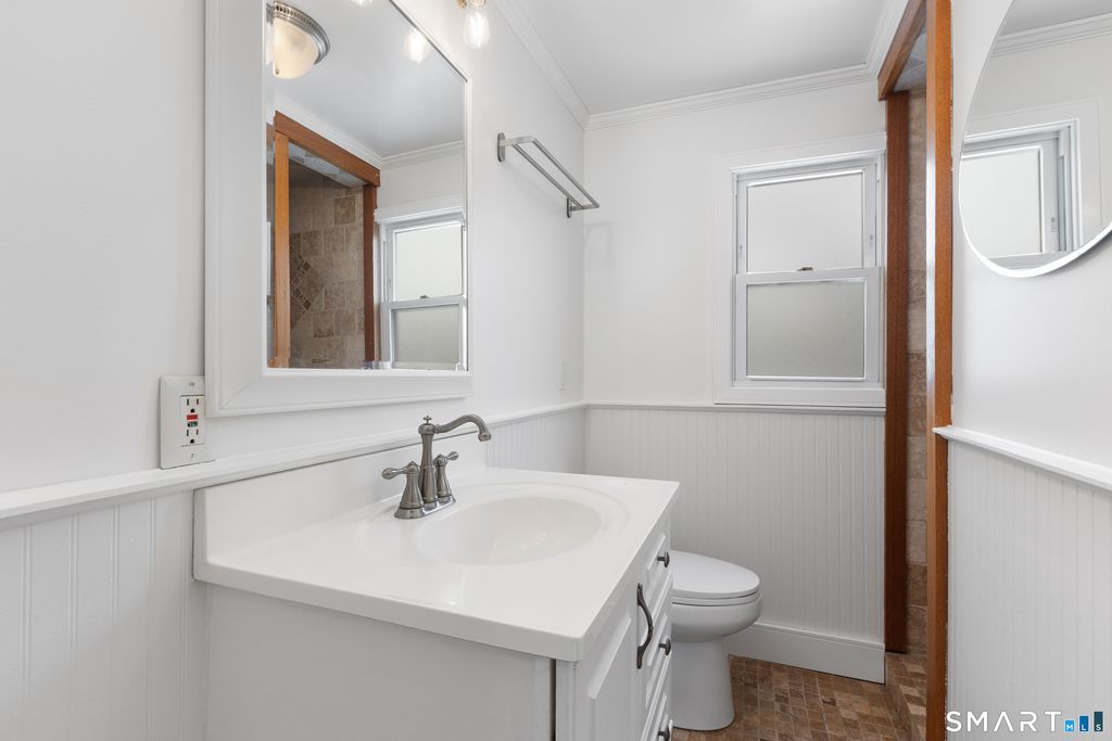 Beautifully renovated coastal home featuring 4 bedrooms and 2 full baths on a .14-acre lot, ideally located just a short stroll to the beach and marina. The home features a beautifully updated kitchen with quartz countertops and premium stainless steel appliances. Beyond the open living and dining areas, a converted year-round sunroom wrapped in windows offers versatile additional space, ideal for an eat-in kitchen, playroom, home office, or studio. Upstairs offers a primary bedroom with built-ins and an additional bedroom or office space with full bath. The newly finished basement adds two additional bedrooms and a playroom for lots a flex space. Outdoor living is effortless with an expansive deck for entertaining and a spacious, flat, fully fenced backyard. Modern comforts include natural gas heat, central air conditioning, public water and sewer, along with new windows, a brand-new electric panel, new gas furnace, and new high efficiency hot water tank. Just a short walk to downtown Fairfield, Metro-North train, and Sherman School, this home delivers the perfect blend of coastal lifestyle and everyday convenience.