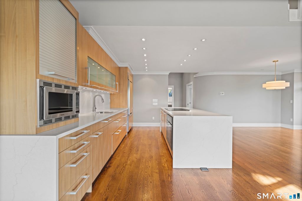 Don't just rent a home; inherit a lifestyle. Experience the ultimate in waterfront living in this impeccably renovated 2,224 sq. ft. end-unit townhome at Charles Cove, East Norwalk's premier gated coastal enclave. Situated in the pin-drop quiet Marvin Beach section on the Long Island Sound, this residence offers the expansive width of a detached home with front-row seats to the marina and spectacular 4th of July fireworks. The centerpiece of this waterfront retreat is an impressive, loft-like 2nd-floor Great Room. This massive, sun-drenched space combines the living room, dining room, and kitchen into one cohesive area designed for effortless entertaining. Soaring ceilings and huge windows frame panoramic harbor views, with a beautiful gas fireplace serving as a focal point. The chef's dream kitchen is reimagined with new Quartz counters, new precision Miele oven, top appliances, and wine fridges. For a seamless indoor/outdoor entertaining, the Great Room opens to a private deck with a retractable sun awning; the perfect vantage point to watch boats glide through the quiet marina. 1st floor primary suite with sliders to a 2nd waterfront balcony. This sanctuary includes a spa-bath with private sauna, toilet closet, and large shower with dual shower heads. Laundry is also on the 1st floor. A 2nd bedroom & full bath are located on the living level, while the 3rd-floor loft offers flexible spaces for a home office, den, or fitness area and potential 3rd bedroom.