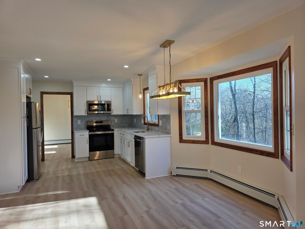 This beautiful home has been almost completely remodeled. New flooring throughout the entire home (checked as laminate but it is a luxury vinyl plank which is not an option to check), new sheetrock in many rooms. New kitchen cabinets, new stainless-steel Refrigerator, new stainless-steel stove and new stainless-steel dish washer, Also, new countertops, new vanities in bathrooms, recessed lighting in first floor rooms. The list just goes on and on. The only thing it needs now is a new tenant. Please don't wait and miss out on the exceptional home. Some exterior pictures are from different seasons.