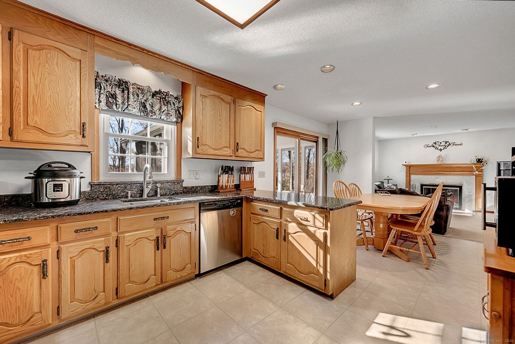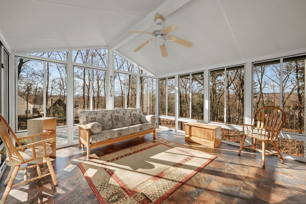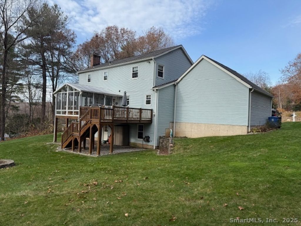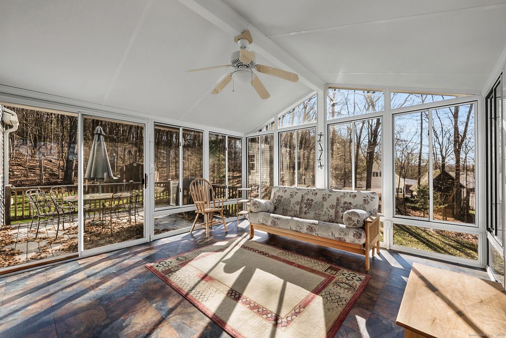 Centered in the cul-de-sac, you will find this beautiful Colonial home, nestled on 1+ acres. Grab a rocking chair and come sit on the welcoming front porch! You will be greeted by the two story foyer with the formal living room to the right - a great place for gatherings. Across from the living room is the formal dining room which opens into the kitchen. The eat-in kitchen offers granite counters, newer stainless appliances, a pantry and ample space for prepping and serving! You are sure to enjoy the fireplaced family room with windows to the back yard views. The laundry room and half bathroom are also on the first floor. The grand finale is the screened in sunroom - sure to become your favorite room in the house! Upstairs is the primary suite on it's own wing, complete with a vaulted/beamed ceiling, a walk-in closet the spa-like bath which boasts a Jacuzzi tub, separate shower and a double sink vanity. An additional two bedrooms and full bath are on the second floor as well. But wait, there's more. The walk-out lower level is finished with a rec room and its own wet bar - the perfect place for your own little get-away! Upgrades include: wired for a generator, roof & windows (2015), hot water heater, oil tank, driveway & sidewalk, furnace (2023) and so much more! You will see and feel the TLC throughout as you tour this home. Enjoy the oversized shed and many fun times in the large and usable yard, for years to come. All of this and only minutes from Farmington/Bristol!