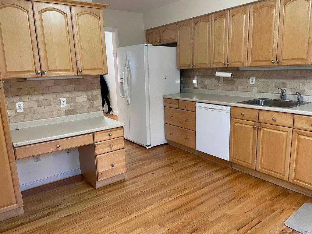 Welcome Home! This tri-level townhouse well cared is ready for its next tenant. The main floor includes a comfortable eat-in kitchen, a convenient half bath, and a bright, open living room with access to a private backyard area - ideal for outdoor cooking or unwinding after a long day. On the upper level, you'll find two well-sized bedrooms with spacious closets and a full bathroom. Hardwood floors all throughout. The lower level offers over 590 sq. ft. of versatile space, perfect for extra bedroom or family room or workout equipment with a laundry area, storage. The home also includes two assigned tandem parking spots, plus visitor parking. Located just minutes from the Merritt Parkway, public transportation, dining, and shopping, this townhouse offers comfort and convenience in one. Don't miss this fantastic rental opportunity!