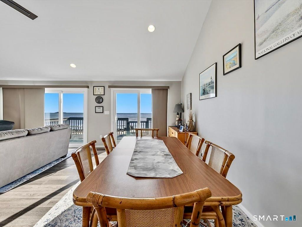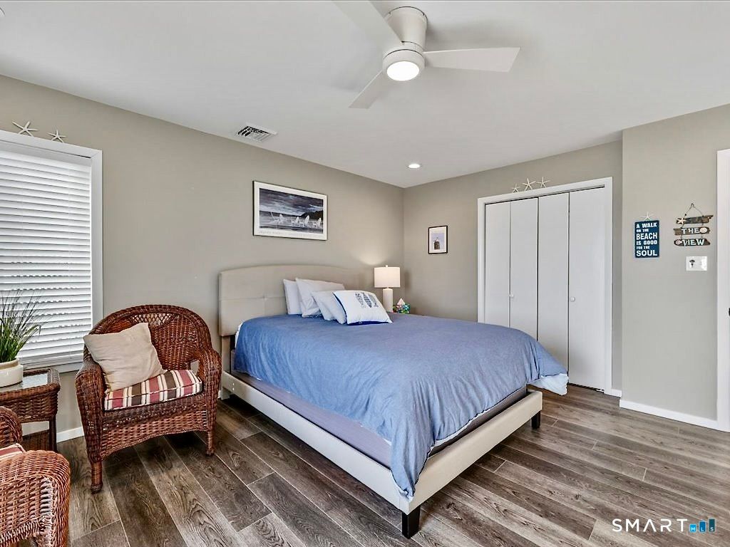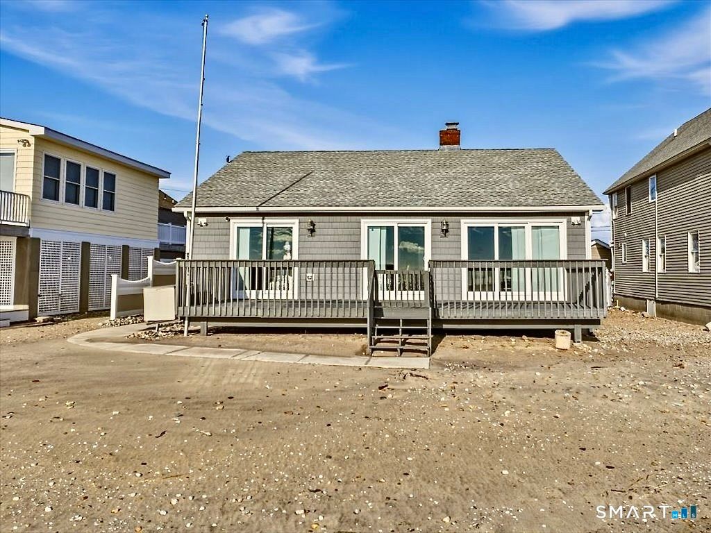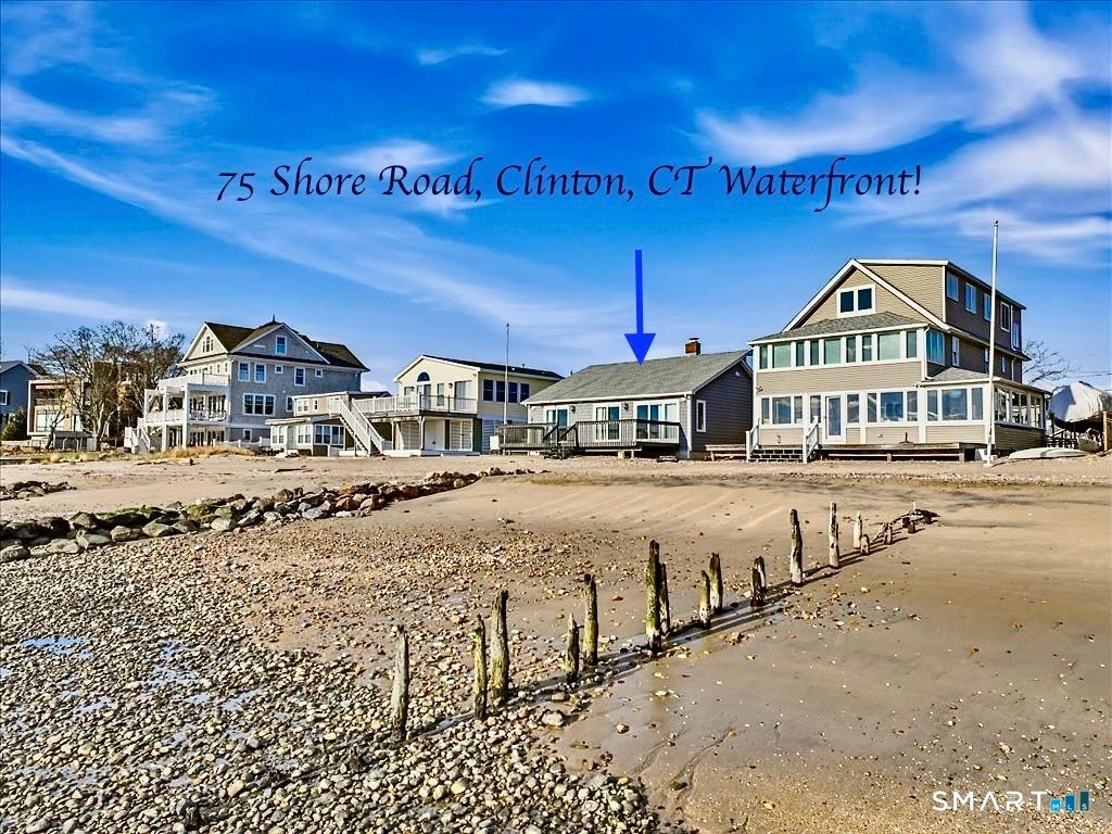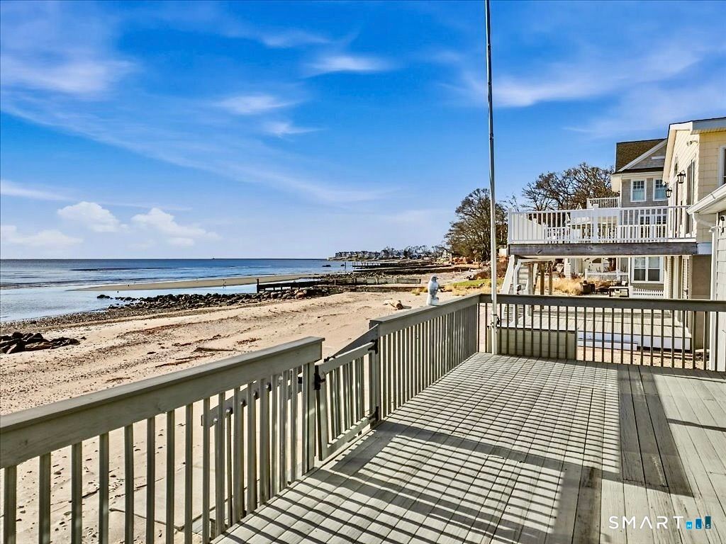 Welcome to wonderful! This beautifully renovated single-level home is offered in meticulous condition, showcasing thoughtful upgrades throughout and unobstructed water views of Long Island Sound. Located in the desirable Clinton Beach community, the property features a private beach with 45 feet of sandy frontage and a spacious deck overlooking the shoreline, with soft sand just steps from your door. Fully remodeled inside and out, the home offers a bright, open living area with a wood-burning fireplace and double sliders that capture stunning coastal views. The main-level primary bedroom also features sliders leading directly to the deck, allowing you to enjoy year-round seaside scenery. With three bedrooms and 1.5 updated baths, this move-in-ready home blends modern comfort with timeless coastal charm. Major updates include a new roof, windows, doors, flooring, insulation, sheetrock, wiring, Cedar Impressions vinyl siding, kitchen, bathrooms, and appliances. Additional improvements include Mitsubishi heating and air conditioning systems, ceiling fans in the living room and all bedrooms, an alarm system, outdoor shower, and storage shed. The home is offered fully furnished for immediate enjoyment. A mooring for up to a 30' boat or swim dock conveys with the property. Whether enjoyed seasonally or year-round, this exceptional waterfront ranch offers carefree coastal living at its finest. Don't miss this rare opportunity to own a beautifully updated waterfront home.