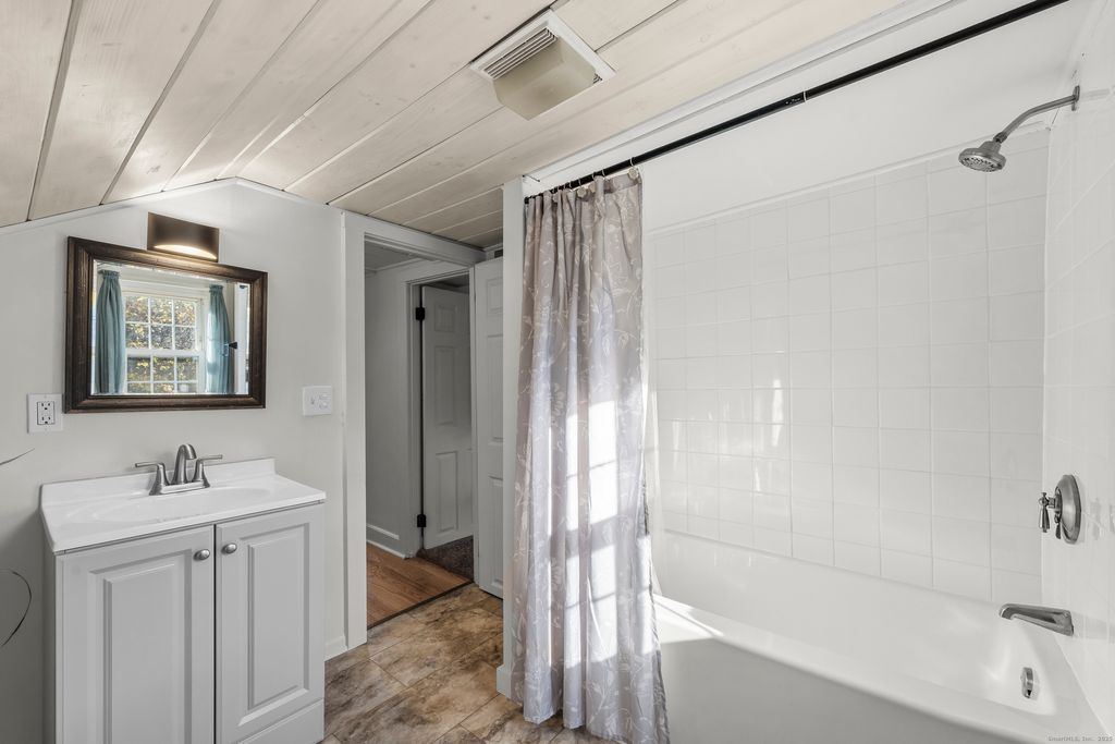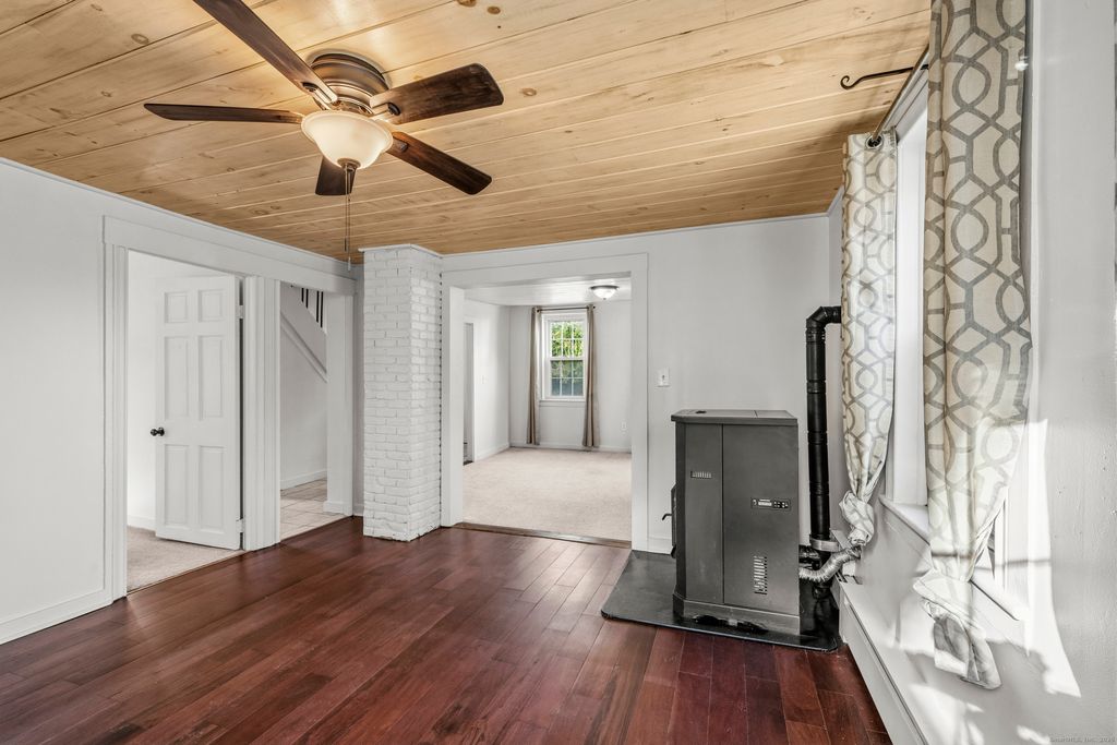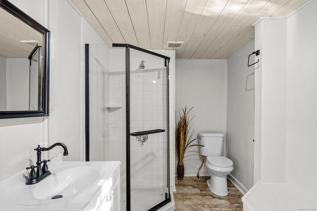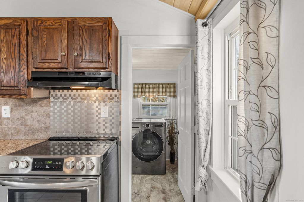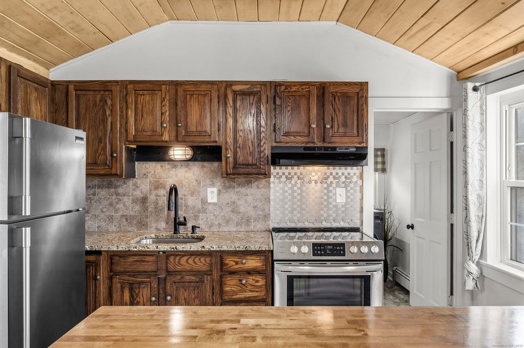 Experience turn-of-the-century charm paired with modern updates throughout. Originally built around 1900, this renovated property offers true first-floor living with a spacious bedroom, generous walk-in closet, and convenient first floor laundry. A beautifully remodeled full bathroom features a brand new tiled shower with glass door and combination washer/dryer setup. The kitchen is equipped with granite countertops, stainless steel appliances, and custom built-ins. The home's entire interior is enhanced by custom wooden shiplap ceilings, adding warmth and character throughout. Upstairs offers two additional bedrooms and another full bath, creating a comfortable layout for family or guests. Mechanical upgrades include a newer hot water heater, boiler, and pellet stove to maximize efficiency and comfort throughout winter months. Outside you'll find a detached garage and a custom built shed, perfect for DIY'ers and hobbyists. Garden enthusiasts will love the raised beds, and the chicken coop is perfect for anyone dreaming of farm-to-table mornings right in their backyard. The fenced backyard, complete with a platform deck, provides an ideal space for entertaining and outdoor enjoyment. This home is a commuter's dream, offering easy access to Rt. 2, I-395, and just a short drive to Downtown Norwich, Backus Hospital, and Mohegan Sun Casino! Check out those pics and schedule your private showing today!