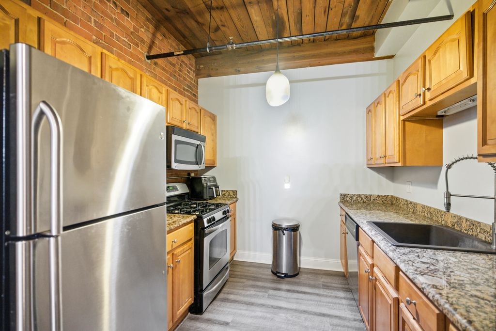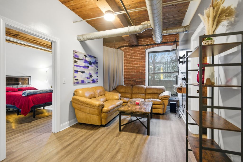 Live your best loft life on the Housatonic. Welcome to Birmingham on the River - a renovated historic mill where industrial-chic vibes meet modern comfort. This 2 bedroom, 2 full bath condo offers approx. 1,050 sq ft of modern living space with 9+ ft ceilings, exposed brick, open wood beams and oversized windows that frame the river and downtown Shelton. The open-concept layout is perfect for everyday living, hosting friends, or working from home. The updated kitchen features stone counters, stainless steel appliances, gas cooking and plenty of prep space for everything from Sunday meal-prep to game night snacks. The spacious living/dining area flows seamlessly, keeping the whole space feeling airy and connected. Retreat to the primary suite with private full bath, while the second bedroom and second full bath give you options for a roommate, office, or guest space. In-unit full-size washer and dryer, central air, and efficient natural gas heat keep life easy and comfortable year-round. Birmingham on the River brings the amenities: on-site fitness center, elevator, storage unit in the lower level, and one assigned parking space. Common charges include heat, water and gas, plus building insurance - so your monthly budget goes further. With annual taxes around $2,486 (per recent tax records), this condo delivers low-maintenance living with surprisingly manageable carrying costs.