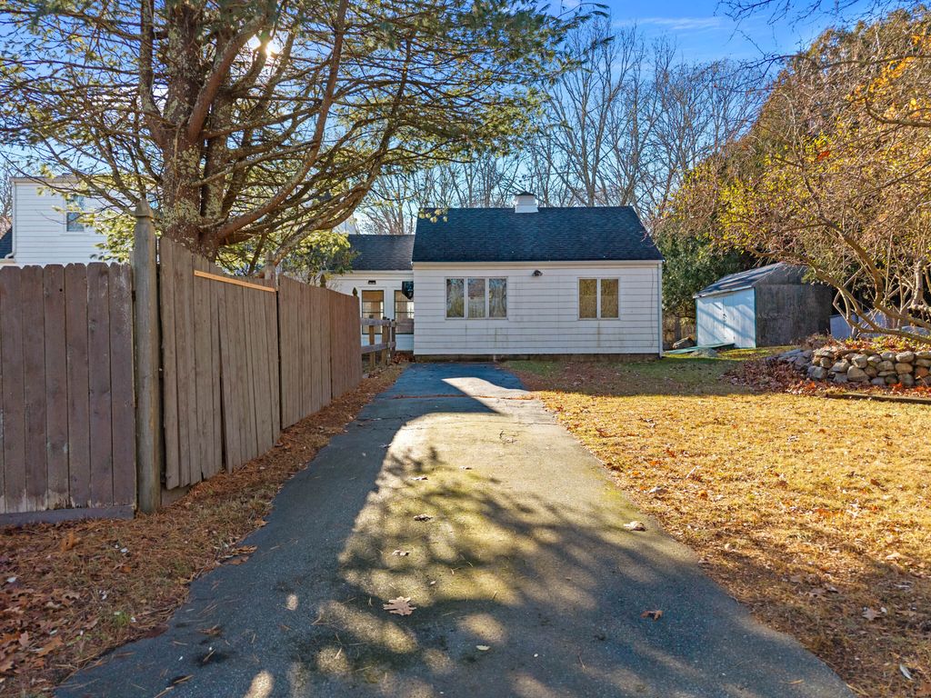 Charming Cape Cod offers 4 bedrooms and 2 full baths with 2,375 sf of living space on a 0.39-acre lot. With a fenced yard and a spacious breezeway, the home makes enjoying the outdoors convenient. The eat-in kitchen provides a comfortable setting for casual dining, while the combined dining and family room features warm wood paneling, a fireplace, and French doors, creating a welcoming space for gatherings. A separate living room with built-in shelving adds character and functionality. The main floor includes a large laundry room, a primary bedroom, a secondary bedroom, and an office, with two additional bedrooms upstairs. A full basement adds plenty of storage or potential for future finishing. Situated in Noank, this home is just moments from the water, offering easy access to harbor views, boating, and the charm of a classic coastal village.