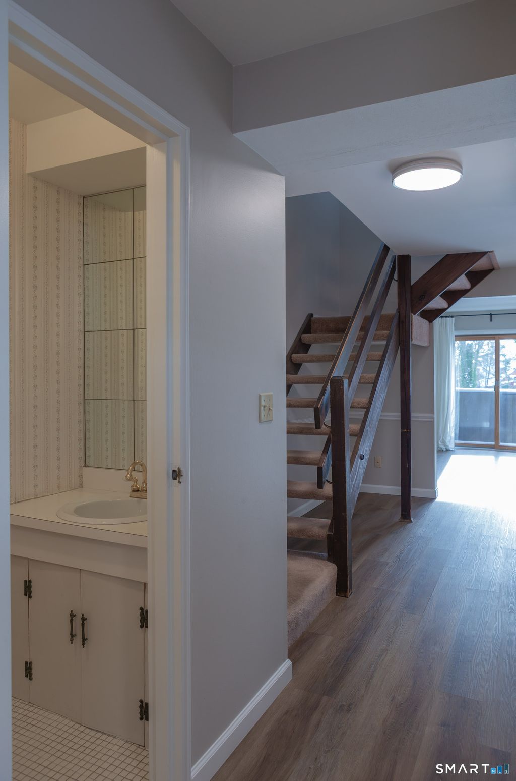 The Ridgewood Association offers exceptional value in a super convenient Fairfield location. Just minutes to the Fairfield Metro station, located in between I95 and the Merritt Pkwy. An easy drive to downtown or Black Rock Turnpike amenities. The natural exteriors are enhanced by zen garden courtyards and mature trees. Sidewalk access to Fairfield Warde HS and McKinley Elementary plus playground, tennis courts, running track, baseball and soccer fields and more. 151 is a townhouse style unit with two bedrooms and one and a half baths. The main level has vinyl wood plank floors, an updated white galley kitchen, dining area and a family room that walks out to an elevated deck, plus a half bath, two pantries and a coat closet. The second floor bedrooms are very good size with spacious double closets. Off the hall there is a full size laundry / utility room and two additional storage closets plus a full bath. The unit comes with one assigned parking space. There is guest parking available and on street parking. Monthly common fees of $535 include heat (gas), water, trash and landscaping/snow removal, which means you only have an electric, cable/wifi and tax bill. Up to two pets are allowed - only one dog per unit (no weight limit). 8 out of 36 units are rented. Town beaches, parks, trails, etc are exceptional. Fairfield offers something for everyone and this is a great place to start or downsize.