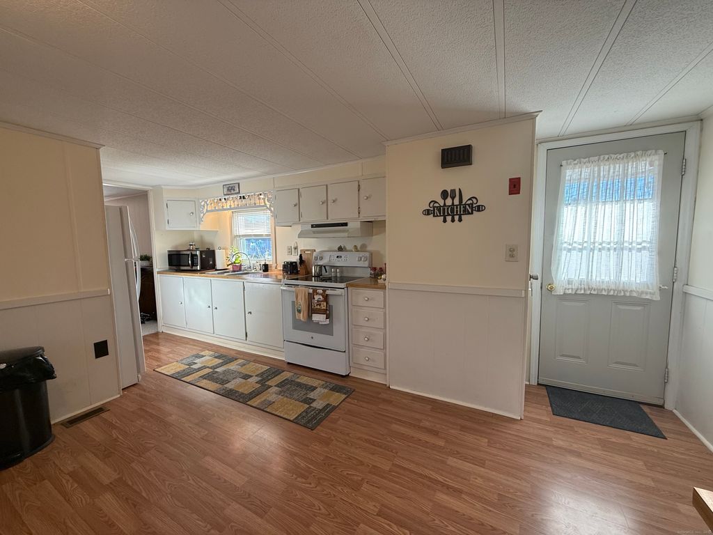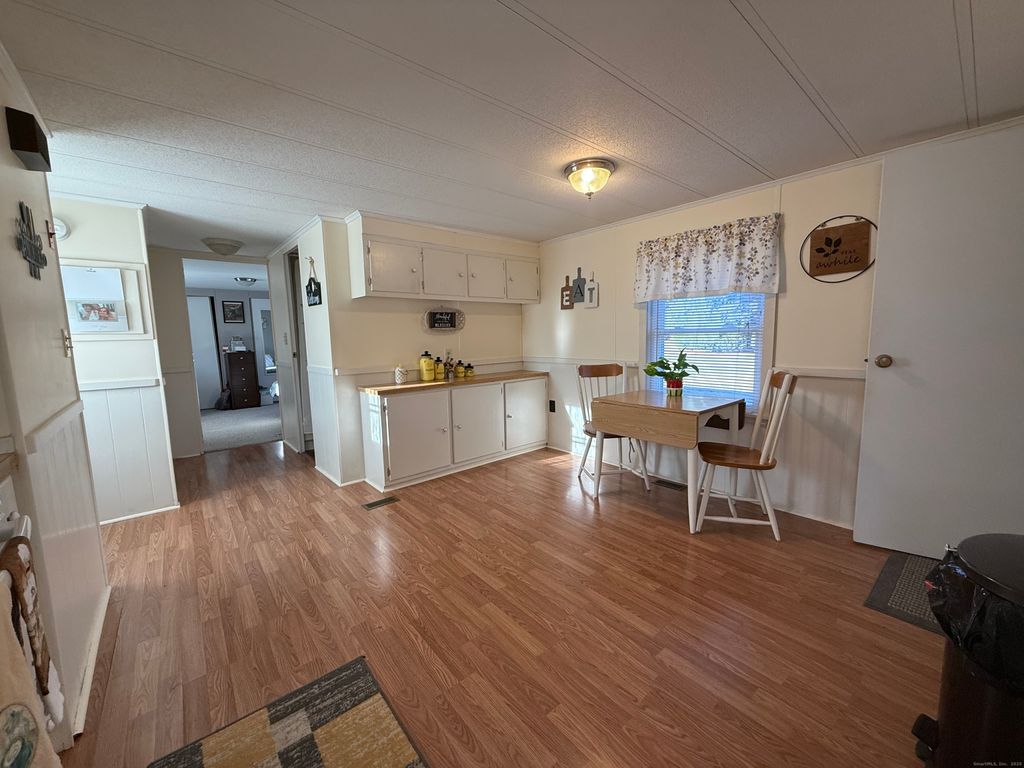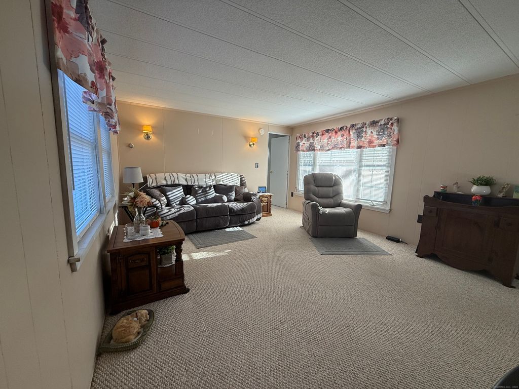 Very well kept & turn-key 2 bedroom 1 bathroom mobile home in sought after 55+ living at Quinebaug Park. Home features updates to heating system, windows, & roof, along with newer laminate flooring, updated appliances in the bright and clean kitchen. Home is nicely decorated & painted. The kitchen has plenty of room to work along with an eating space/dining area and a good amount of storage. Both bedrooms are good sized with double closets and nice carpeting. The full bathroom has a tub/shower and newer laminate flooring. Laundry is conveniently located in the hallway. The yard outside has plenty of potential and there is currently 1 shed (two are allowed). Paved driveway and plenty of parking. Enjoy walking around the park, on site community center, a pond, along with the amenities of the park while also being convenient to shopping.