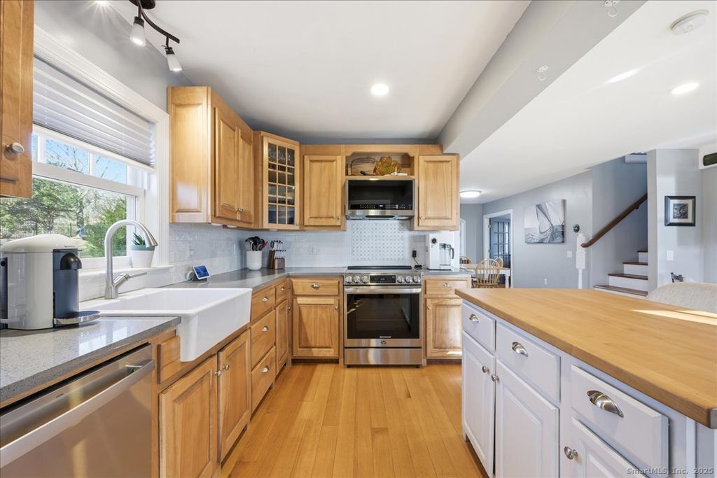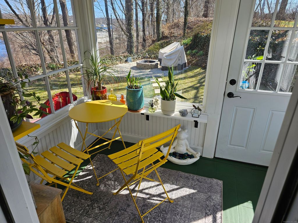 Overlooking the Thames River on a quiet dead-end street If you value privacy, quality, and timeless charm, this stunning river-view home will take your breath away. Nestled on a peaceful dead-end road overlooking the Thames River, this beautifully remodeled (down to the studs) 3-bedroom, 2 full bath and 2 electric FP, Cape/Cottage style home offers the perfect blend of character and modern comfort. Inside, you'll find an open floor plan filled with natural light, gleaming HW floors, and a great kitchen with quartz countertops, stainless steel appliances, and a butcher block center island that seamlessly connects to the dining and living areas. The electric fireplace's adds warmth and ambiance, while the first-floor den, office or bedroom and a full tiled bath, and convenient laundry provide everyday comfort and function. Upstairs, the primary bedroom features a walk-in closet, and the lower-level walk-out basement offers plenty of storage. Step outside to enjoy breathtaking river views from nearly every angle. The cozy side porch is ideal for morning coffee or evening sunsets overlooking the fire pit area. The terraced, ivy-covered retaining walls, flat yard for activities, and charming outdoor shed make this home just as impressive outdoors as it is inside. With new Hardie board siding and meticulous care throughout, this home is truly move-in ready - a rare find in such a serene, scenic setting. the views, craftsmanship, and tranquility make this a must-see propert