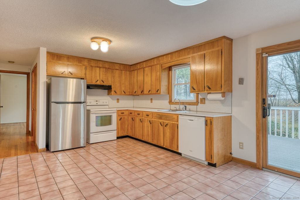 This wonderful one level home has many wonderful features. Lets start with the outside and how much room you have on this 0.99 acers lot with great level areas perfect for the Gardner, stone walls and lots of wildlife. Walk in the front door into the large living room with beautiful hardwood floors, vaulted ceilings and skylights for lots of natural light. Kitchen offers large dining area, sliders to back deck, and good storage. Full bath that has been updated, and three large bedrooms all offering the beautiful hardwood floors. Lower level is finished which can offer many things, enjoy a nice family room, could be a nice in-law area, wood stove is a nice feature, laundry room could be made into another full bath, walk into garage and workshop area with a walkout basement door. Living in Columbia you have access to the beautiful Columbia Lake to enjoy the beach area, boating and more. Lots of walking trails, and rec areas that offer pickle ball courts, tennis courts. Columbia is centrally located with easy access to RI, Boston, NY. Easy access to Hartford and Norwich. This is a beautiful home that has been well cared for.