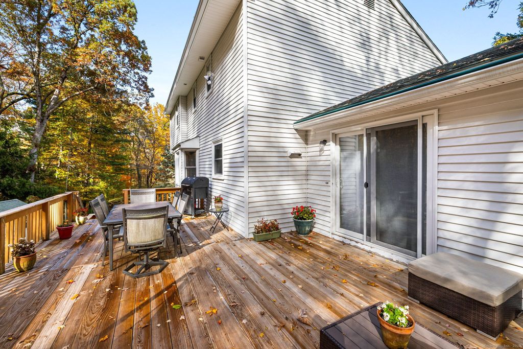 Beautiful 4-bedroom Colonial located at the end of a quiet cul-de-sac in one of the most desirable, peaceful areas around. This home offers an ideal layout with hardwood floors throughout and plenty of space to fit every lifestyle. The main level features a front-to-back living room, a separate family room with a wood-burning fireplace, a formal dining room right off the kitchen, and a convenient half bath. From the family room, step right out onto the brand-new, spacious deck - perfect for relaxing or entertaining and overlooking the private backyard. Upstairs you'll find a spacious primary bedroom with its own full bathroom, plus three additional bedrooms and another full bath, all on the same level. A finished, walk-out basement adds even more usable space, complete with a sink by the door for washing boots, gear, or pets. There's also a walk-up attic for easy storage. Major mechanical updates include a brand-new top-of-the-line Buderus furnace, offering efficiency and peace of mind for years ahead. The private backyard and the end-of-cul-de-sac setting make this home quiet, welcoming, and hard to beat. A truly rare find.