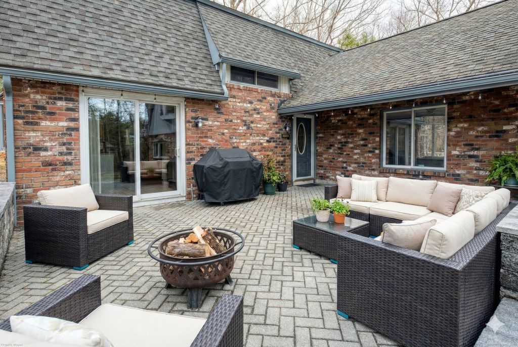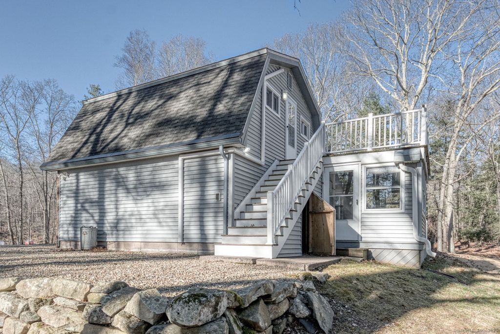 Tucked back from the road and surrounded by mature trees, this charming Gambrel-style home offers privacy, character, and exceptional space-including a separate studio in-law apartment with its own private entrance. The main level features a warm and inviting living room with a wood-burning fireplace, luxury vinyl flooring, and an oversized family room perfect for gatherings. Just off the main living area is a bright screened-in porch, ideal for relaxing and enjoying the peaceful wooded backdrop. The first-floor primary bedroom provides convenience and easy one-level living, The second floor includes 2 additional bedrooms and a full bath, offering flexibility for guests, family, office space, or hobbies. A standout feature of this property is the studio in-law apartment, designed with privacy in mind. It offers its own separate entrance. Outdoor living shines with a spacious patio bordered by stone retaining walls, mature landscaping, and multiple areas for gardening, entertaining, or simply enjoying the peaceful surroundings.