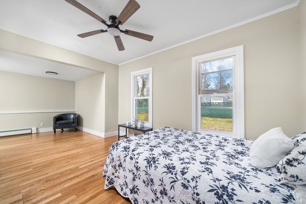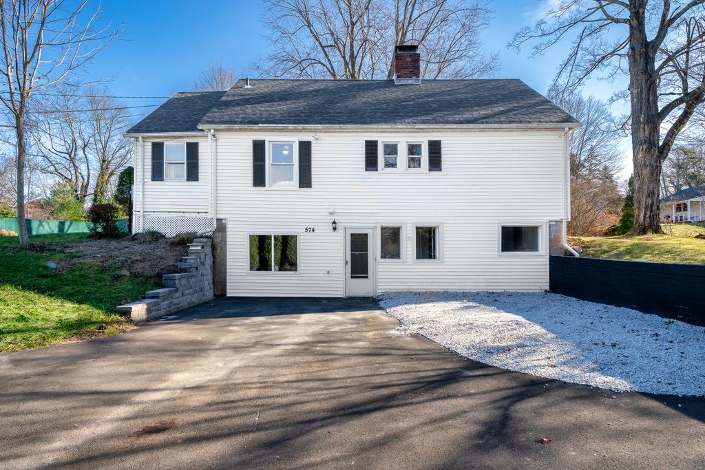 Wonderful, fully remodeled Cape with a unique layout that truly sets it apart! This home offers 2 large bedrooms on the main level and 2 additional bedrooms on the lower level, along with 3 full bathrooms-ideal for flexible living arrangements. The beautifully updated kitchen features shaker-style cabinets, granite counters, and brand-new stainless steel appliances. The dining room opens to a spacious living room with a stunning wood-burning fireplace, creating a warm and inviting space. The main level includes two generously sized bedrooms, including a primary bedroom with a full bath, an oversized second bedroom with plenty of room for a home office, plus an additional full bath. Hardwood floors run throughout this level. The walk-up attic has potential to be finished for additional living space. The lower level offers two more bedrooms, a full bath, and additional living space, making it perfect for guests, multigenerational living, or a private work-from-home area. This is not your typical Cape-its distinctive design is definitely worth seeing! (Please note: the home sits uniquely on the lot, and the main entrance from the driveway is on the lower level.) Professional photos coming Friday!