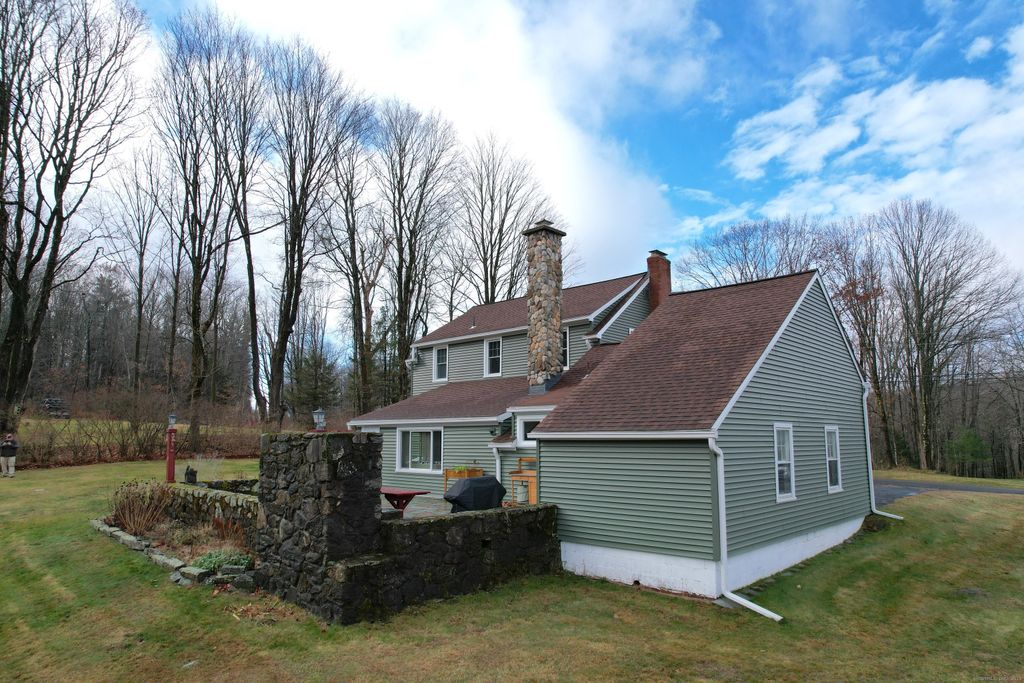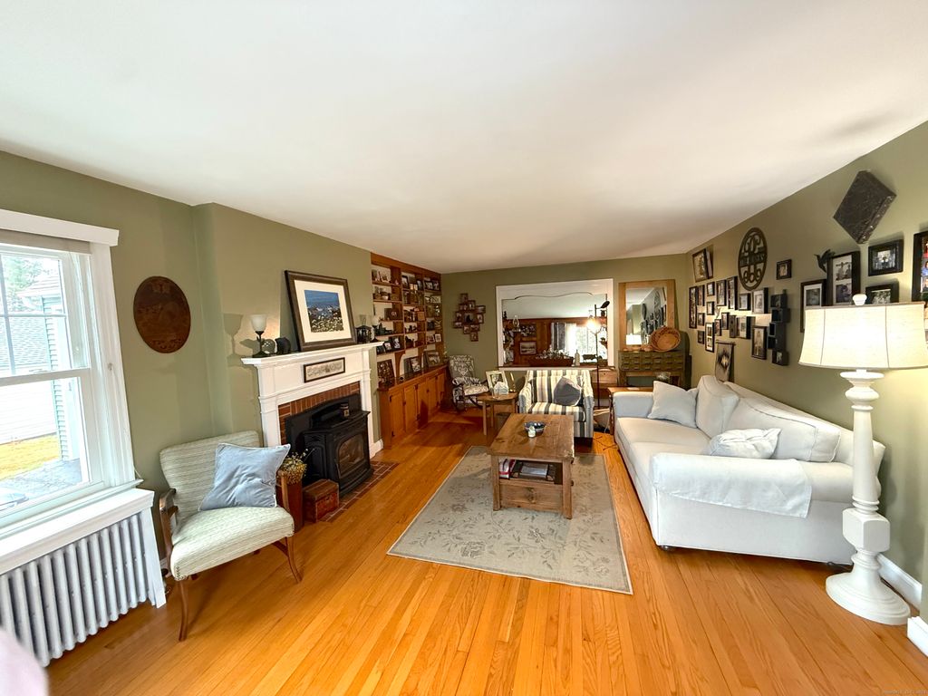 Discover this beautifully maintained 3-bedroom, 1.5-bath Colonial set on a level one-acre lot less than two miles from town. This home has been thoughtfully updated over the years and is truly move-in ready. Enjoy a spacious living room and family room, each featuring a cozy fireplace-perfect for New England seasons. The updated kitchen offers modern appliances and a bright, comfortable workspace. Gleaming hardwood floors run throughout the home, adding warmth and character to every room. Step outside to the attractive fieldstone patio complete with a built-in barbecue, an ideal setting for outdoor dining and entertaining. This property has an impressive list of improvements, including a new boiler and hot water heater (2016), well pump and tank (2014), updated siding, roof, gutters with guards, and garage doors (2022), and Pella windows installed in 2025. In excellent condition and offering tremendous value, this charming home is ready for its next owner to enjoy all it has to offer.