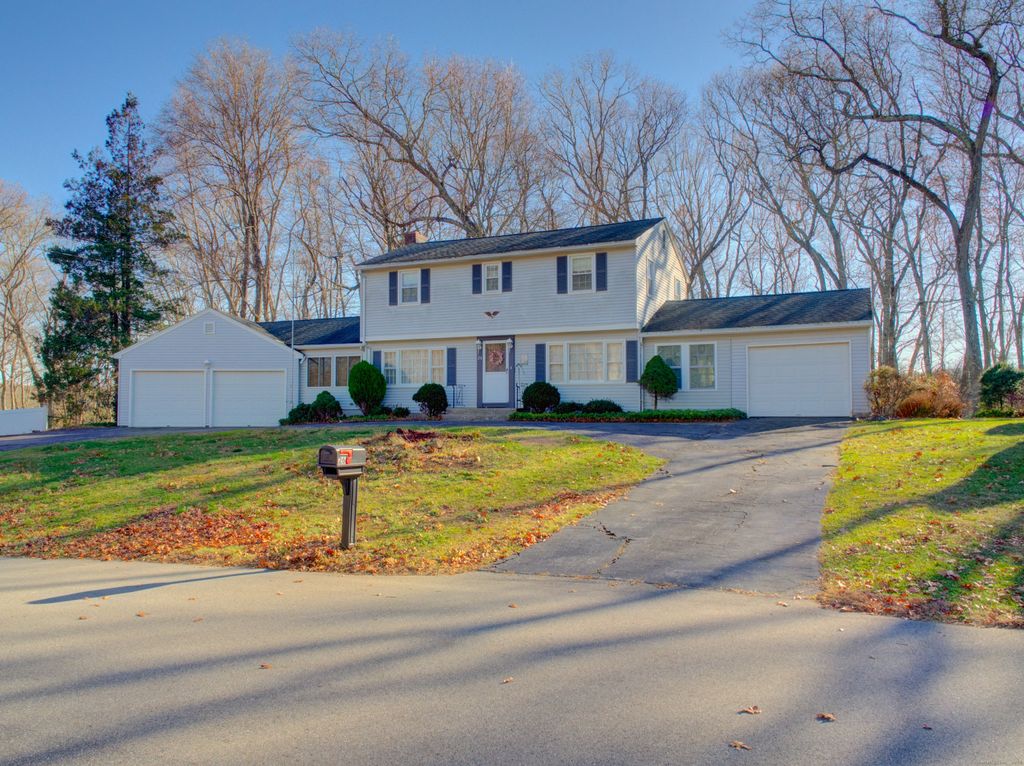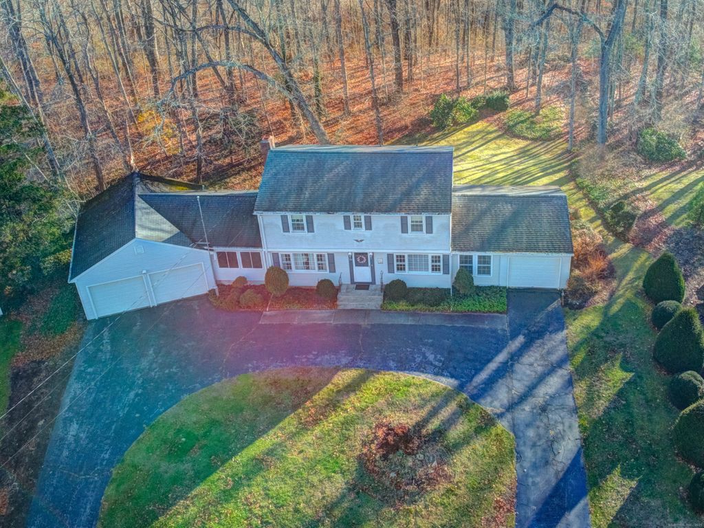 Beautifully maintained 4-bedroom, 2-bath Colonial located in the Kingswood Development on 0.74 acres. This home welcomes you with a circular driveway and three attached garage bays. Inside, the spacious living room features a wood-burning fireplace and hardwood floors, offering a seamless flow into both the kitchen and formal dining room. A cozy family room sits just off the kitchen, and an additional flex room between the garage and living room is ready to be finished to create even more living space. The lower level is partially finished-perfect for a playroom, office, or craft area. Notable updates include electrical, central air, newer replacement windows, and public water. Step outside to enjoy a private backyard complete with a deck and patio overlooking the wooded surroundings. A wonderful property with space, comfort, and potential.