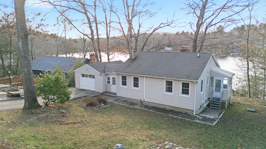 Brand-new multi-level TimberTech decks spanning roughly 800 square feet anchor the back of this fully furnished and beautifully renovated lakeside home on private Witches Woods Lake, creating an expansive outdoor haven for hosting, unwinding, and breathing in the calm of true waterfront living. With expansive views and direct frontage, the home has been thoughtfully updated in recent years with a modern granite kitchen, stainless appliances, updated flooring on the lower level, new septic system, and new mini-split heating and cooling systems for year-round comfort. The main level offers an easy flow between the kitchen, dining area, and living room, along with two comfortable bedrooms and a refreshed full bath. A sun-filled enclosed porch extends the living space and opens directly to the new decks, creating simple indoor-outdoor connection throughout the seasons. The walk-out lower level adds versatility with a spacious recreation room that could function as an additional bedroom, a second full bath with laundry, and direct access to the yard and shoreline. A one-car garage, breezeway, and multiple storage areas add everyday convenience. With kayaking, swimming, boating, and lakeside quiet just steps from your door- and with every major improvement already complete- this is peaceful, uncomplicated waterfront living where everything just feels easier.