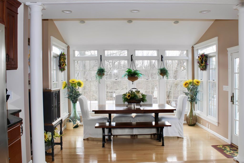 Enjoy extraordinary sunsets from the deck of this spacious contemporary Colonial located on a quiet cul-de-sac! A welcoming front entrance with stone steps and a sitting area leads into an impressive two-story foyer featuring a second-floor landing with its own sitting area and balcony overlooking the great room. The great room offers hardwood floors, cathedral ceilings, and a raised-hearth fireplace. A formal dining room with hardwood floors provides an elegant space for entertaining. The light and bright kitchen features granite countertops, stainless-steel appliances, a center island, and a sunken breakfast sunroom with expansive windows overlooking the in-ground pool, built-in hot tub/spa, and pool house/cabana which is complete with French doors that open to a built-in bar. The yard is beautifully landscaped with stone walls and plantings, and the covered patio in the pool area is perfect for gatherings. The primary bedroom suite includes a full bath, walk-in closet, and an additional closet. Other features include central air, central vac, and 600+ sq ft of additional living space. Outdoors, you'll find a greenhouse and a large fenced garden area. A two-car garage completes the package. A must-see property with exceptional indoor and outdoor living spaces!