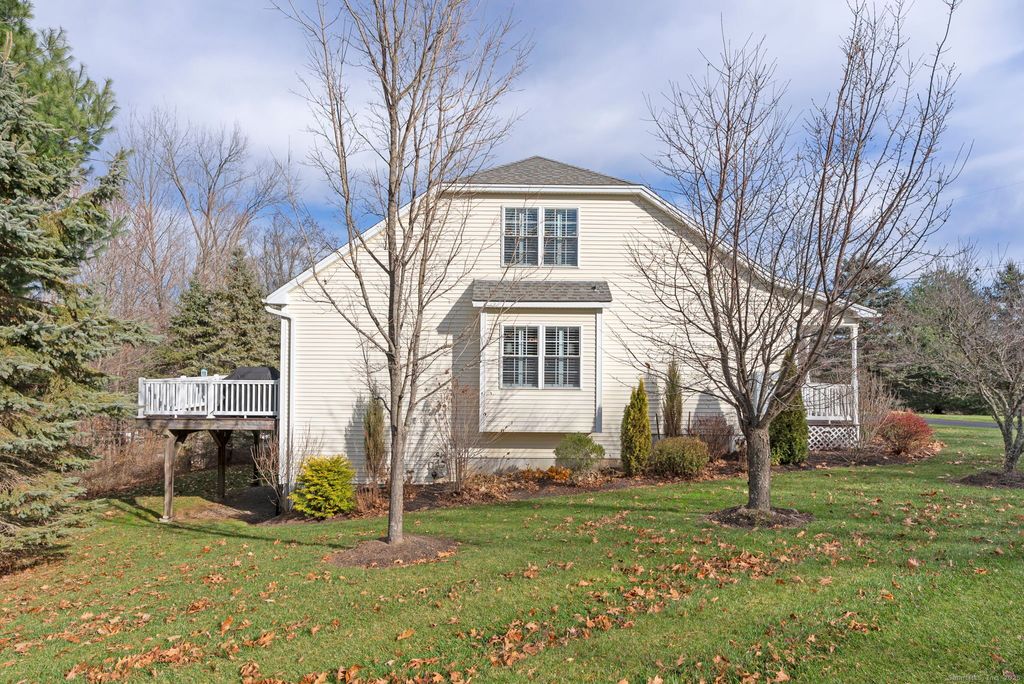 Welcome to this immaculate custom Farmhouse Cape in the serene 55+ community of Oak Meadow Estates, located on the Harwinton/Torrington line. This warm and inviting home-the former MODEL-offers the perfect blend of low-maintenance living and modern comfort. The open-concept floor plan features a dramatic living room with soaring cathedral ceiling and gas log fireplace flowing into a knock-your-socks-off remodeled gourmet kitchen. Highlights include an expansive island, leathered granite counters, stainless appliances, high-end Viking propane range, double ovens, and wine chiller. The luxurious primary suite boasts a generous walk-in closet with California Closets system, tray ceiling, and spa-like en-suite with double sinks, tiled shower, and soaking tub. An elegant powder room showcases fresh shiplap and brushed gold fixtures. The second floor offers an expansive guest bedroom/retreat, huge loft with balcony overlook-perfect for a home office, den, or workout space-and a beautifully remodeled full bath. Premium finishes abound: plantation shutters, built-ins galore, recently refinished natural hardwood floors, and like-new carpets. Step outside to your private Trex deck with retractable awning overlooking peaceful woodlands. The full walk-out basement provides ample space for future expansion. Meticulously cared for and move-in ready-just pack your bags and enjoy maintenance-free living in this stunning home. Your dream home awaits.