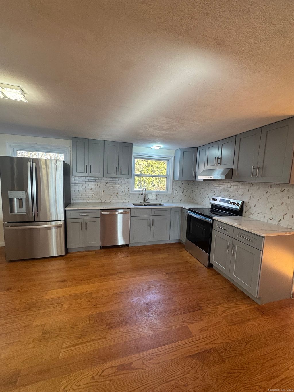 Stunning 3 bedrooms 2 full baths ranch nested in the hills of Norwich ,at the end of a cu da sac within a peaceful natural landscape ! Living room with cathedral ceiling , showcasing its natural lighting with big windows ! Brand new hardwood floors throughout. The beautiful remolded kitchen features cabinets with self closing doors , sleek quartz countertop with a spacious centre island and brand new stainless steel appliances ! Enjoy a fully finished walk out basement with 22 x18 family room with a sliding glass door that leads directly to a serene private wooded backyard ! An additional room offers flexibility as a home office ! Don't miss the opportunity to own this fabulous home ! It won't last !