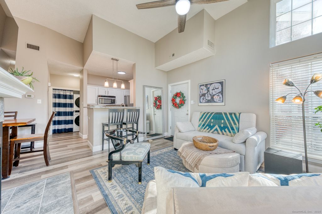 Discover easy one-level living in this beautifully updated condo with private rare courtyard facing location, perfectly situated in one of Middletown's most sought-after communities in the desirable Westfield section. This sun-filled home features soaring 16' ceilings in the open living and dining room, creating a bright and airy atmosphere ideal for both everyday living and entertaining. A cozy wood-burning fireplace adds warmth and charm, while large windows invite abundant natural light throughout.The kitchen has been tastefully renovated with granite counters, sleek new cabinetry, and modern appliances-ready for your next culinary creation. Both full baths have been stylishly updated, and the home's modern mechanicals provide comfort and peace of mind. With two spacious bedrooms, including a primary suite with a private bath, this condo offers a comfortable, thoughtfully designed floor plan. Step outside to a private patio area perfect for relaxing or dining al fresco. Enjoy the convenience of guest parking and an array of amenities, including a sparkling pool and tennis courts. Located just minutes from I-91, downtown Middletown, and shopping, this home offers the perfect blend of comfort, style, and convenience-ideal for today's low-maintenance lifestyle. Spring will bring the custom planted iris, day lilies, lavender and Hostas the current owner planted in the gardens surrounding this unit. Don't miss this opportunity to live in one of Westfield's premier communities