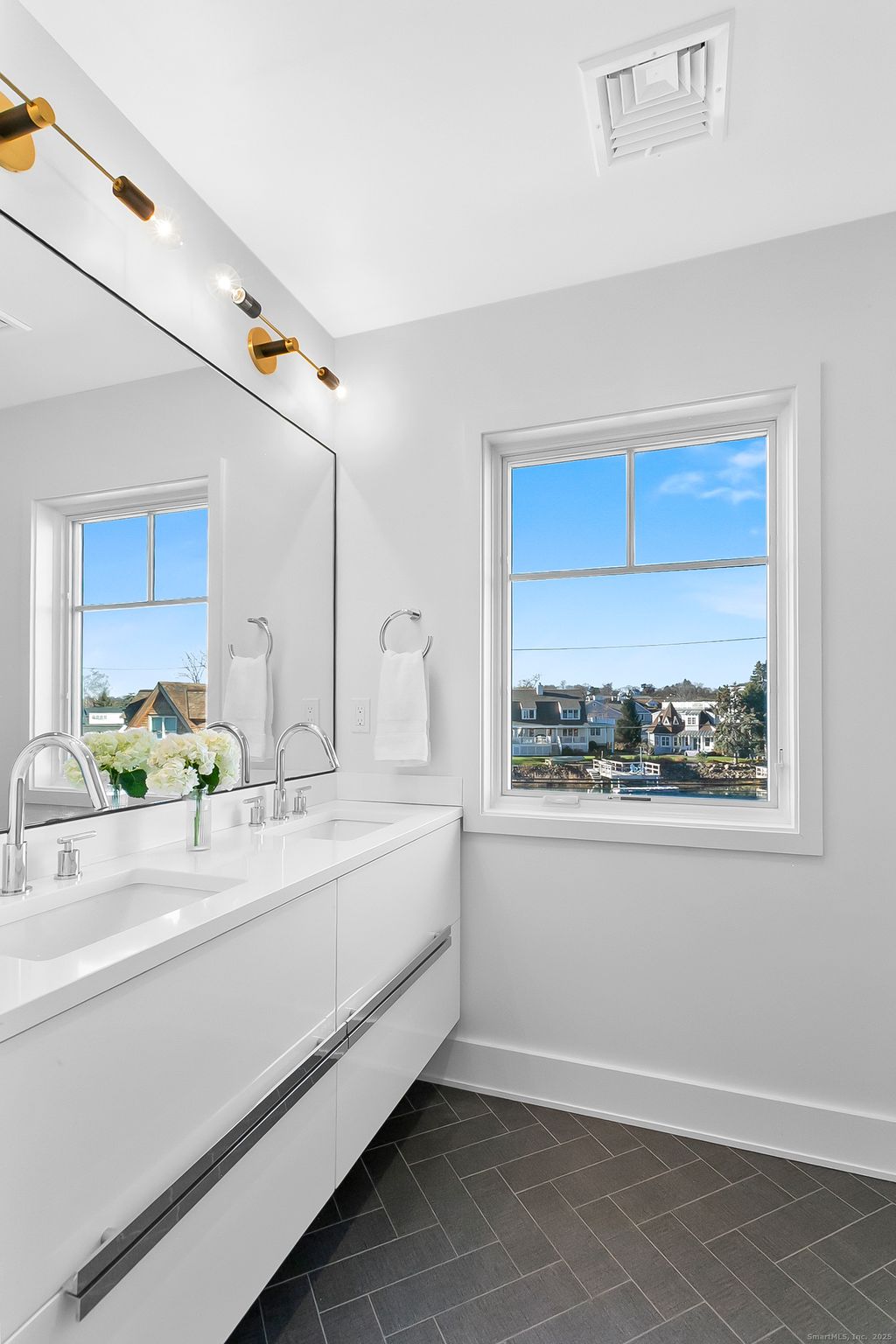 Gorgeous waterfront retreat w/ breathtaking panoramic LI Sound views & miles of walkable sandy beach. This exceptional FEMA compliant coastal retreat includes a private boat dock w/ an additional two-car garage on the creek side, creating endless opportunities for waterfront enjoyment. Featuring 3 levels of spacious living, w/ 8 rooms & 4 full baths, thoughtfully designed for everyday living & entertaining. Enjoy stunning water views from every level w/ BOTH sunrises & colorful sunsets from multiple balconies that invite you to relax & take in the scenery. Highlights include a sun drenched open floor plan, high-end Wolf and Sub-Zero appliances, custom built-ins, a gas fireplace & white oak hardwood floors throughout. Additional private rooms offer flexibility for work, guests, or quiet retreat. A rare & highly desirable 1st floor bedroom w/ full bath is perfect for guests, in-laws or a home office. Outdoor living is just as impressive w/ an oversized patio ideal for entertaining, dining or simply watching sailboats glide by during regattas. Amazing features include roof top deck, 2 separate garages, driveway parking for up to 10 cars (a true rarity in the beach area), home generator, outdoor shower & a Tesla charging station. Ideally located close to town, train, parks, school & shopping. Beach walks, boating, peace & tranquility await in your very own premier luxury coastal home - Welcome home to 2101-2102 Fairfield Beach Road.