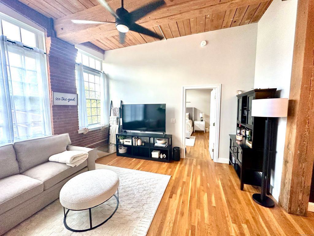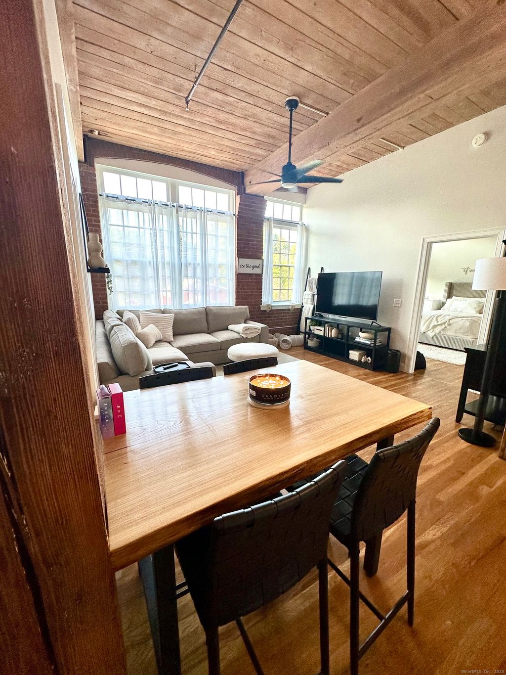 One of the hottest addresses in town - The Lofts at Sherwood Falls offers a truly special lifestyle in a beautifully restored Gilded Age factory. Soaring ceilings, exposed brick and original wood beams compliment dramatic two-story windows that flood the home with natural light and highlight the gleaming hardwood floors. This open, cheerful unit features a spacious primary suite with full bath, numerous closets throughout and the convenience of in-unit laundry. Recent upgrades include Central Air (2023), high-end lighting and ceiling fans, fresh paint, updated bathrooms, New KitchenAid appliances and a newer washer& dryer. Enjoy pet-friendly grounds with paved walking paths, Paper Goods Pond & Park across the street-perfect for fishing, ice skating or relaxing by the water. Residents also enjoy a well equipped gym, clubhouse, elevator, 2 assigned parking spaces & guest parking. The expansive rear patio overlooks the scenic Mattabasset River and waterfall with outdoor tables, seating and gas grills for warm-weather entertaining. If convenience is on you wish list, look no further. This prime location is less than a mile to the Berlin Amtrak Station and close to bus routes, shopping, trendy restaurants and breweries, local coffee and ice cream shops, medical facilities, and major highways-centrally positioned just two hours from both NYC and Boston. This delightful third-floor flat is move-in ready and the only one currently available in the complex.