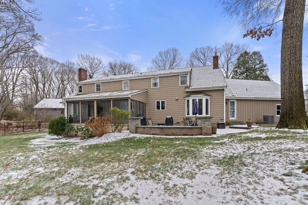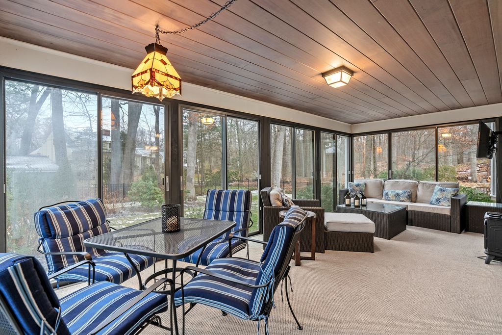 Welcome to 26 Berwyn Road, a beautifully updated Cape in one of West Hartford's most desirable neighborhoods. This inviting home features a gracious entry with hardwood floors throughout. The large vaulted-ceiling living room opens to the eat-in kitchen with granite counters, stainless appliances, counter seating, pantry, great storage, and space for a kitchen table overlooking the private backyard. Off the dining room, a charming three-season porch enhances the living space and offers peaceful views of the landscaped yard. The first-floor primary suite includes a large updated bathroom with a freestanding tub, separate shower, an expansive walk-in closet and access to the porch. A home office/den along with convenient first-floor laundry and half bath complete the first floor. Upstairs are two spacious bedrooms, a full bath, and generous storage areas off each bedroom. The partially finished walk out lower level offers a refreshed bonus space with new drop ceiling, vinyl plank flooring and a full bathroom (currently not working and not in use) and plenty of storage. Additional features include gas heat with three zones, central air plus mini-splits upstairs, 200-amp electrical, irrigation, and a two-car attached garage. Enjoy the stunning, fully fenced-in backyard with beautiful stonework and a built-in fire pit-perfect for relaxing or entertaining. Move-in ready and minutes to West Hartford Center, this home offers comfort, convenience, and timeless appeal.