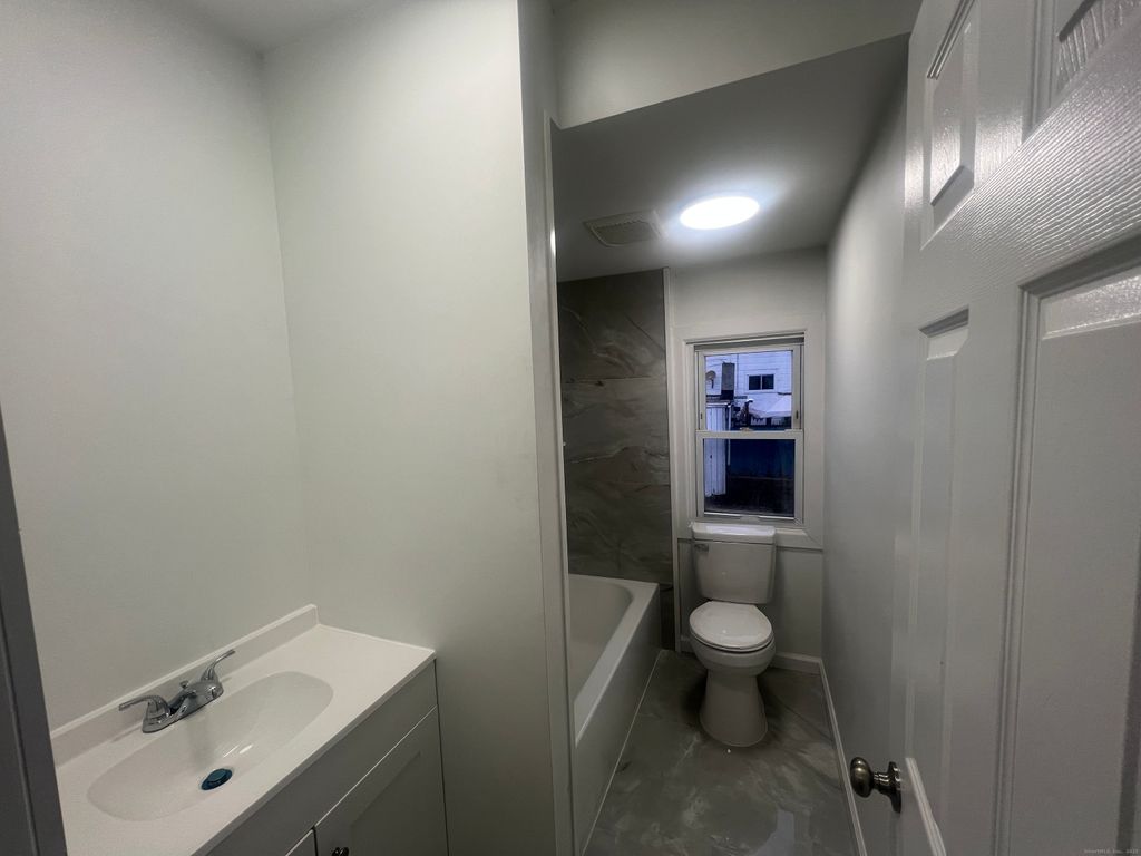 Fully remodeled and move-in ready! Welcome to Unit 1 at 28 Wall Street in Waterbury, offering two levels of comfortable living with modern updates throughout. The first floor features durable vinyl flooring, while the second level showcases beautiful hardwood floors for a warm, classic touch. This spacious unit includes an extra room perfect for a bedroom, home office, or study-giving you the flexibility you need. Additional conveniences include laundry hookups in the basement and two designated parking spaces in the driveway. Located close to local amenities, shopping, and major routes. Don't miss it!