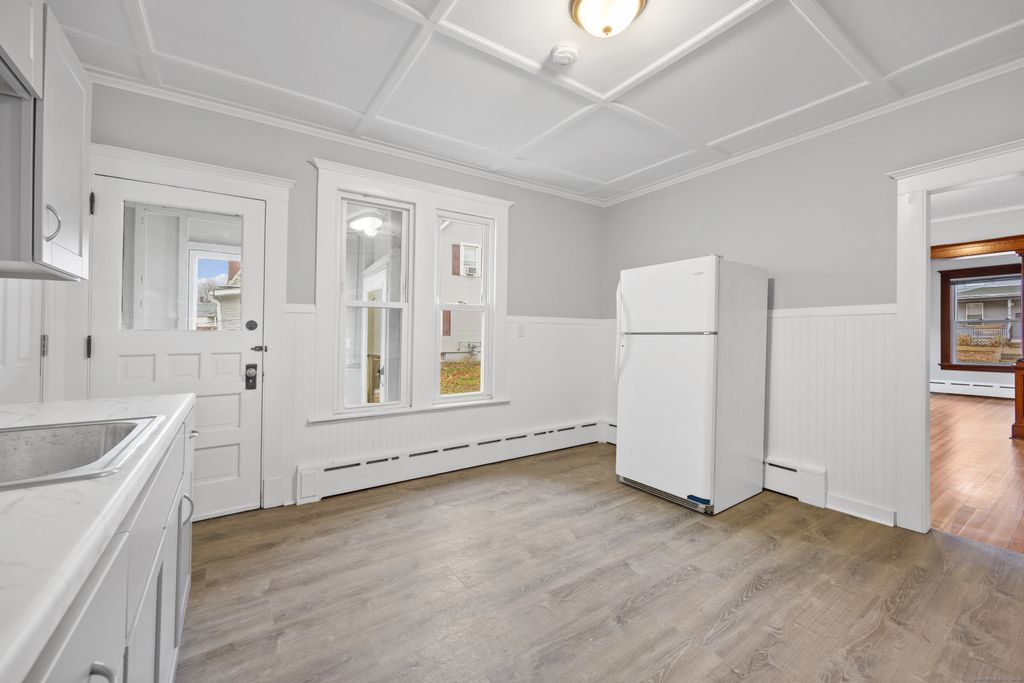 This expansive and charming first-floor apartment seamlessly blends classic character with modern updates. Featuring beautifully refinished natural woodwork and hardwood flooring throughout the living and dining rooms, this home exudes timeless elegance. The layout includes 5 well-appointed rooms: 2 spacious bedrooms, a formal dining room, a welcoming living room, and a fully updated kitchen. The entire unit has been thoughtfully refreshed with tasteful updates throughout. Convenience is key with an in-unit washer and dryer. Outside, you'll enjoy a deep backyard and newly paved, ample off-street parking. Efficient gas utilities complete this comfortable and stylish living space.