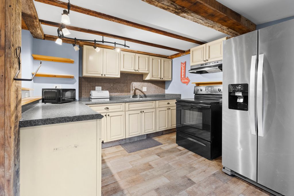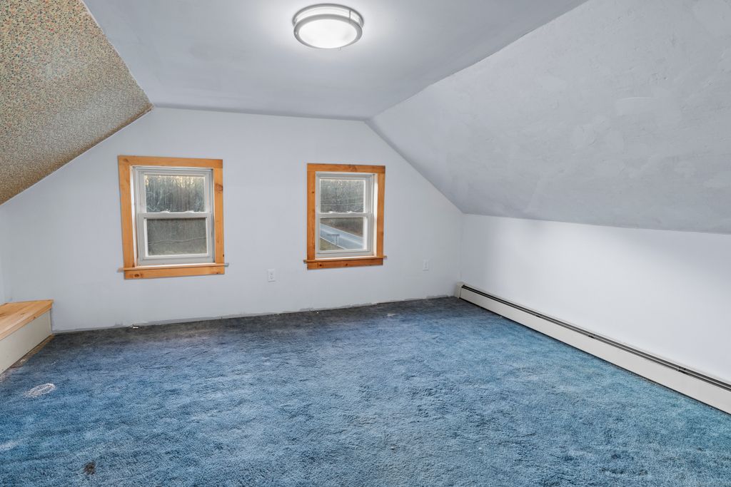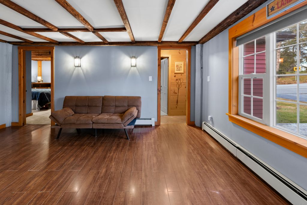 Cute, comfortable home in Pomfret on a nice 1.6 acre lot. The house has been updated with new flooring, remodeled kitchen, and roof. Gardening, lawn games, or just a place to run, the yard can accommodate. The dining area is bright, with southern and western exposer. There is a propane fireplace in the living room to supplement the heat. Nice enclosed porch on the front, and a deck on the side. The primary bedroom is on the first level, as is the laundry. The two story, two stall, detached garage was built in 2000, with a loft for storage or a bonus room. The driveway is shared, but there is plenty of parking. The town record states 1160sqft, however there is 200sqft of finished space where the dining is, and the total finished space is 1360sqft.