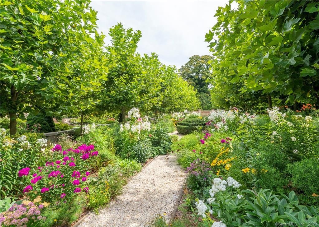 Secluded Mediterranean inspired estate located on prestigious Bluewater Hill South with tennis courts and private beach rights to Compo Beach located steps away. Magnificent historical gardens designed by F.L. Olmstead of Central Park fame in the early 1900's. A crescent shaped pool and pergola over patio crown the front lawn and gardens. The upper living level open floor plan boasts water and garden views from the over sized windows throughout the rooms. The living and dining rooms feature a gas fireplace. A balcony off the living room has seating for many guests. Renovated kitchen with custom Maple cabinets and flooring, built in cabinets, stainless steel appliances and dining area. The den located off the kitchen with the laundry can function as an additional bedroom if needed. Master Suite has large renovated bath with custom built in cabinets. Enter on the garden level through the front door and see a sweeping staircase with mahogany railing or take the convenient elevator if needed. This level features three additional bedrooms, two full baths, family room and sun room. The attached two car garage entrance is through the sun room. This home is truly turn key, decorated and furnished with all the comforts needed to enjoy living this resort lifestyle! The upper garden is shared with the owners.