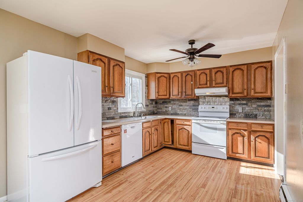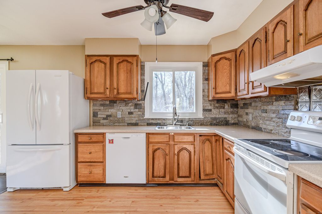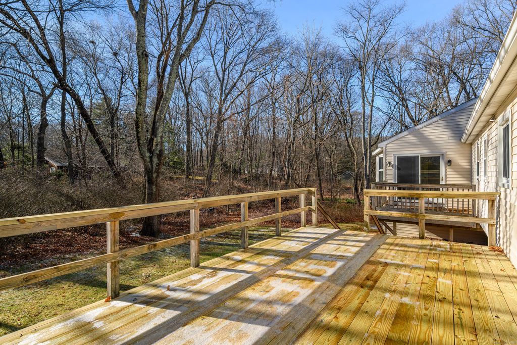 Welcome to 56 Appleblossom Lane in Newtown, CT a beautifully updated Ranch home in a highly desirable neighborhood close to town. This sun-filled property offers an open floor plan with a spacious living room, eat-in kitchen, and direct access to an oversized brand-new deck, perfect for outdoor entertaining. The primary bedroom suite features vaulted ceilings with beams, a walk-in closet, large full bath, and a private deck. Two additional bedrooms are generously sized with wall-to-wall carpeting and hardwood floors underneath. Recent home upgrades include a new roof, new interior paint, new bedroom doors, updated hardware, newer windows and slider, and mechanicals approximately 5-7 years old. The expansive lower level offers excellent potential for future living space or a home office. A spacious two-car garage adds convenient storage. Enjoy the level yard, raised-bed gardens, and quiet streets ideal located close to Newtown center, schools, shopping, and commuter routes. Home is being sold as-is. A fantastic opportunity to own a well-maintained Ranch in one of Newtown's most sought-after neighborhoods.