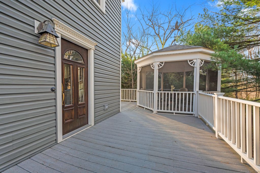 UNIQUE, solidly built, 1-owner home! Set back off a quiet cul-de-sac road and nestled amongst the trees on nearly an acre is this truly special colonial-style home. Built with quality and filled with character this house has been loved and maintained by the same family since day one! It's a one-of-a-kind house. Some unique features include: ceiling beams hewn from the surrounding trees; custom built-ins, stunning sunroom encased in glass...great for star-gazing; and a screened in gazebo on the deck allowing for mosquito free enjoyment. There are wood floors throughout, as well as plenty of windows to bring the sunlight in. The main level features a front-to-back living room with fireplace, exposed beams and gorgeous doors that lead out to the sunroom which opens to the expansive deck and gazebo. The remodeled kitchen boasts high-end custom wood cabinetry and upscale stainless steel appliances, including a 40" stove with double ovens! The kitchen opens to the dining area which can accommodate any size table and even has a comfortable built-in banquette for seating. A half bath rounds out this level. Upstairs are 3 generous-sized bedrooms and a full bath. The primary bedroom has a walk-in closet and a fireplace! The lower level (basement) is walk-out. It is partially finished and has baseboard heat and a fireplace. There's plenty of space here for a family room, office, or whatever you desire. The laundry is located on this level and there's access to the garage from here too.