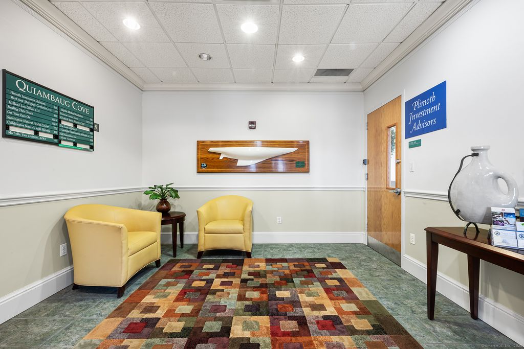 The Quiambaug Cove Professional Center, situated on a scenic 7-acre campus, is arguably one of the finest office buildings in the region. Ideally located just 1 mile from both Stonington Borough and downtown Mystic, it also benefits from high visibility with approximately 7,300 vehicles passing by daily and convenient access to I-95. The property features a range of premium amenities, including ample parking, secure code-based entrance access, a luxurious waiting area, a kitchenette and a state-of-the-art 45-seat theatre with surround sound, a new projector, and an audio-visual component rack. Gross rent covers all utilities, maintenance, and property taxes, making it an exceptional opportunity for professionals seeking a high-quality workspace.