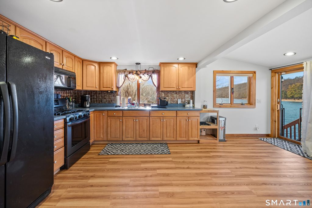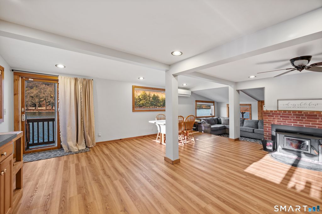 Stunning Direct Waterfront Home with Private Beach, Hot Tub & Two Docks Experience the best of waterfront living in this beautifully updated 2-bedroom, 1.5-bath home located directly across from the picturesque Indian Wells State Park. Offering exceptional water access, modern upgrades, and abundant outdoor living spaces, this property is a rare find. Step outside to your two private floating docks with room for four boats, floating walkways, Trex decking (2017), and your very own private sandy beach-perfect for boating, swimming, kayaking, or simply soaking in the views. First floating walkaway is 13 ft long which opens to your own floating dock measuring 8ftx11ft. The second walkway is 12 ft and opens to a 9.5ft x 8 ft doc. Enjoy outdoor entertaining under the charming gazebo, relaxing in the hot tub, or tending to the raised garden beds in your beautifully landscaped yard. Inside, the home features an open-concept kitchen and living area, enhanced by recessed lighting and tinted windows with custom blinds that create a bright yet comfortable atmosphere. Major updates include a new roof and siding (2017), mini-split heating and cooling systems (2017), and a highly efficient Blaze King wood stove installed in 2023 for cozy winter nights. The finished basement provides a cozy retreat, warmed by a propane stove with supplemental electric heating. The lower level also includes a separate storage room, perfect for organizing seasonal items or household necessities.