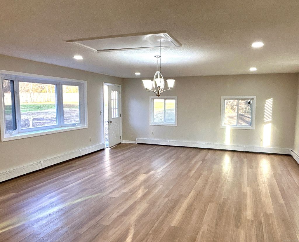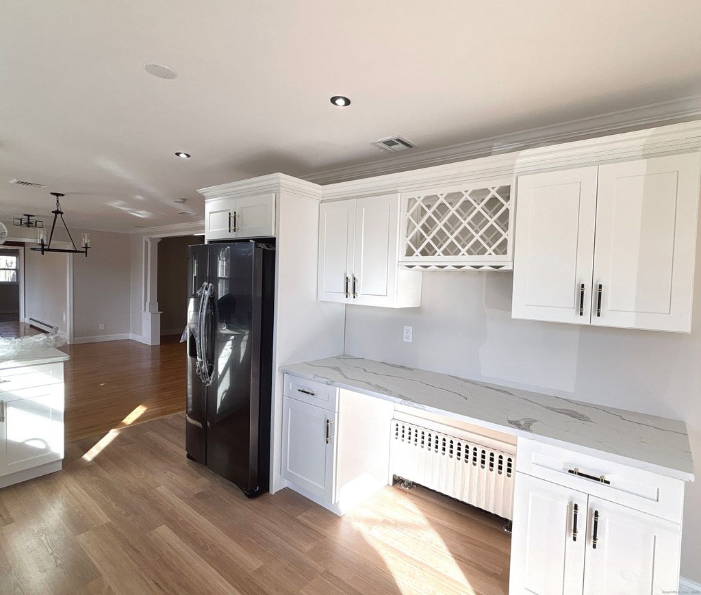 Completely renovated ranch style single family house with legal one bedroom in-law apartment with private entrance. Open floor plan. Brand new kitchens and bathrooms. Good sized bedrooms . Refinished hardwood floors through out the main house. Primary bedroom suite with walk-in closet and full bath. Large living room with fireplace. Finished basement has a huge family room with a full bathroom and an office. One brand new C/A , most windows have been replaced. Newer roof, newer boiler. Driveway with new coating, plus large parking area newly paved. Fenced in level back yard. Please note that this property has been converted from commercial use. The property tax will be reduced when the new tax bill is out, as the mill rate for commercial property is higher. Please confirm with the assessors office.