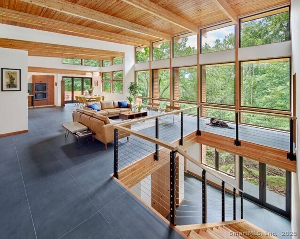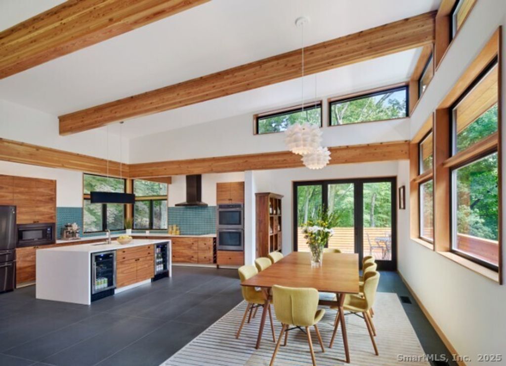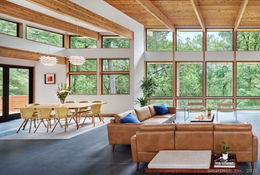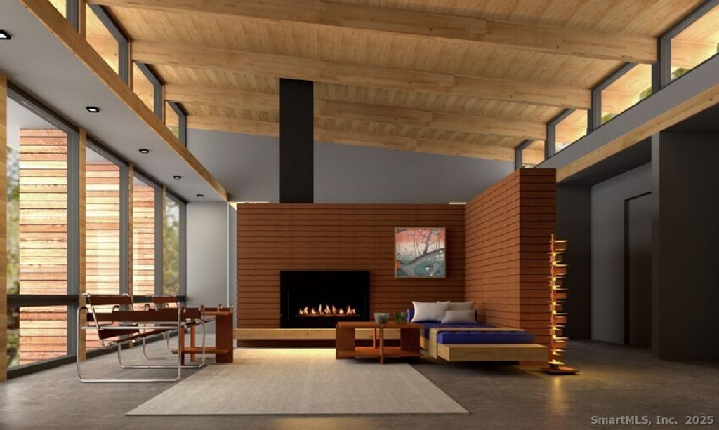 This exquisite Frank Lloyd Wright Usonian-inspired lakefront home offers a unique opportunity for luxurious living on the serene shores of Lake Waramaug, nestled in the charming village of New Preston. Known for its pristine waters, Lake Waramaug is one of Connecticut's most beautiful and well-preserved natural lakes. Presented by Viridian Custom Homes and Lindal Cedar Homes, the house is a masterful design by Aris Georges, a leading authority on Frank Lloyd Wright's design principles who seamlessly blends historical inspiration with contemporary comfort. Finishes by Kathleen Goodwin Interiors reflect a sophisticated blend of Connecticut and New York City design sensibilities. This 4-bedroom, 3.5-bath, 3,285 SF home features airy rooms that optimize both public and private spaces for movement and flow; ceiling heights range from 16' on the main level to 10' on the lower level. Strong horizontal and vertical emphasis creates a harmonious connection to the horizon, enhancing the home's integration with the land. Using organic building materials, broad roof overhangs, and abundant natural light creates a dynamic interplay of light and shadow and aids in passive heating and cooling. Set on 1.85 acres with 500 ft of private waterfront and dock rights, it offers spectacular westerly views. Combining architectural elegance with modern amenities, this home perfectly blends form and function, embodying the timeless appeal of Wright's visionary design.