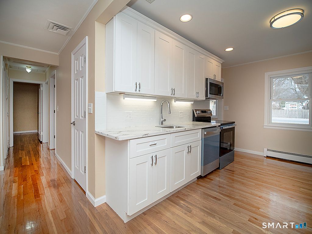 Welcome to 43 Contact Drive, a fully renovated 3-bedroom, 1-bath home located in a desirable West Haven neighborhood. The main level offers a bright, welcoming layout highlighted by beautiful hardwood floors throughout. The brand-new kitchen features quartz countertops, stainless steel appliances, and ample space for a breakfast nook, making it both functional and inviting. The dining room is light and bright with new picture windows and access to your back deck, perfect for summer grilling! The finished basement provides a significant extension of the living space and can easily accommodate a family room, home office, gym, playroom, or entertainment area, offering flexibility to meet a variety of lifestyle needs. Outside, the extra-wide driveway allows for generous off-street parking, while the carport is ideal for keeping your vehicle protected during the winter months. The fully fenced-in yard is perfect for outdoor entertaining, pets, or private relaxation. One of the home's standout features is its exceptional location. Situated within walking distance to an elementary school and just a couple blocks from Hubbard Farms Park, The Dive Bar & Restaurant, Mickey's Beach, and Rocky Beach, this location offers both convenience and recreation. Set in a quiet, well-maintained neighborhood with a strong sense of community, this property delivers comfort, charm, and long-term appeal.