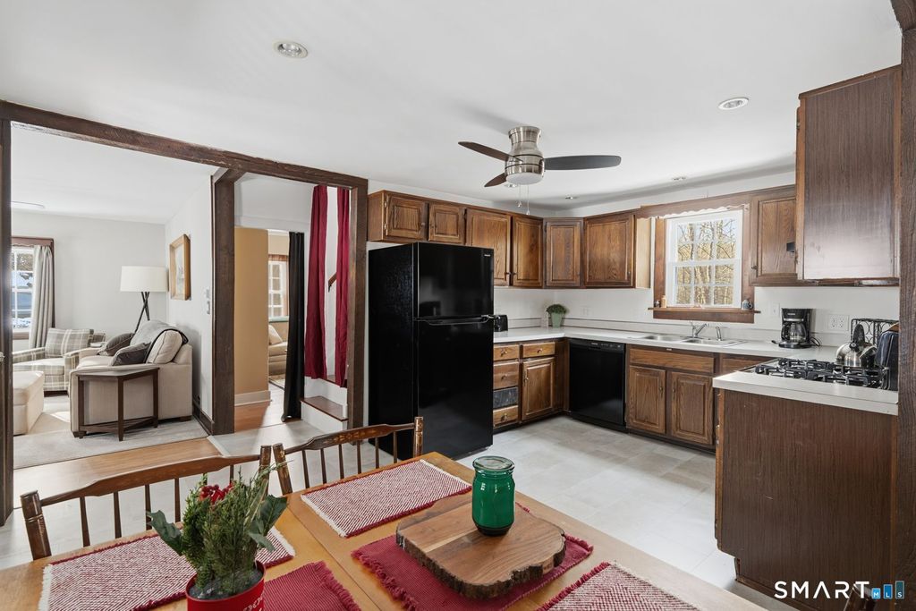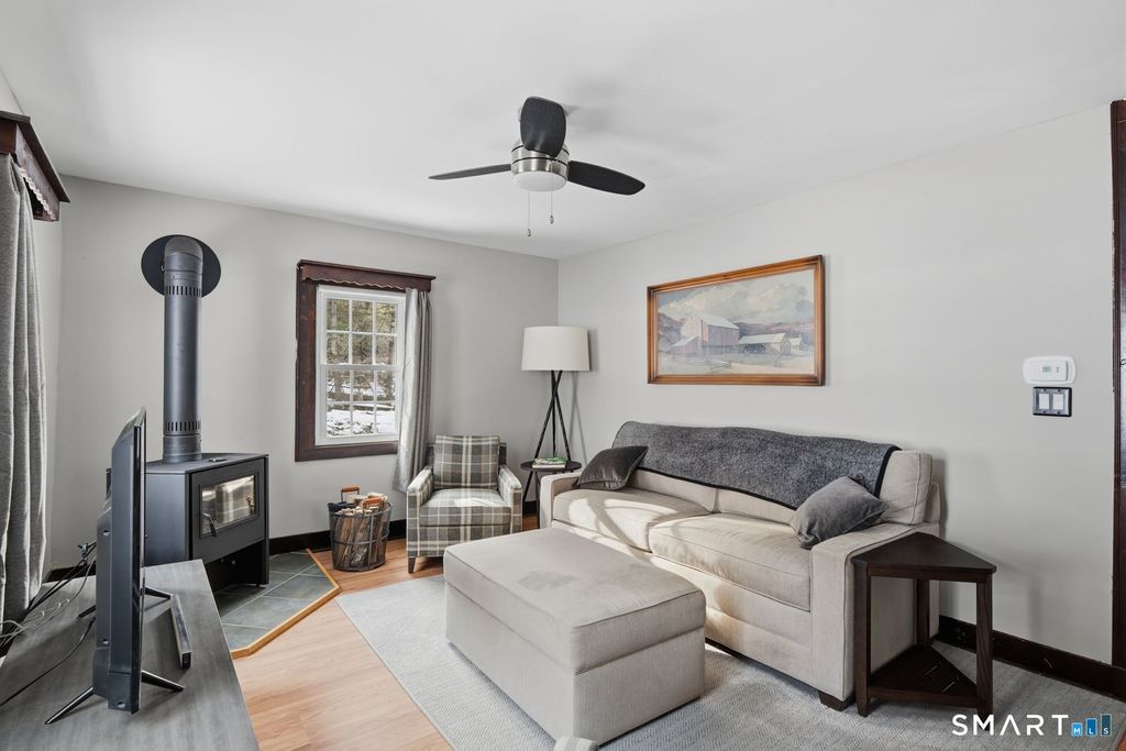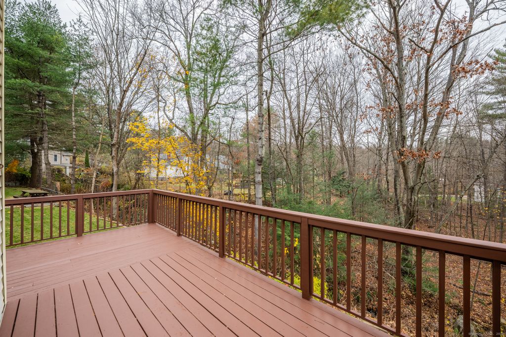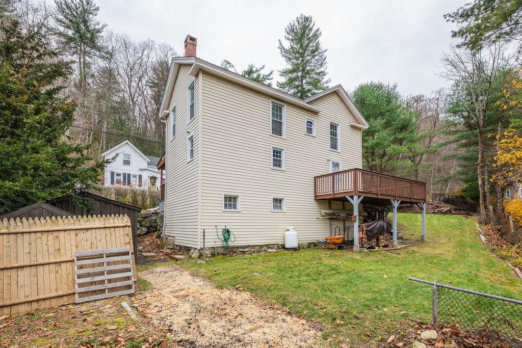 Welcome home to this meticulously maintained 3-bedroom, 6-room Colonial that is truly move in ready and well cared for throughout! A welcoming covered front porch leads into the main level, which features a warm and inviting living room with a cozy wood stove- perfect for relaxing evenings. The spacious eat-in kitchen offers newer appliances, brand-new flooring, and ample pantry space. An updated full bathroom adds modern convenience, while the versatile den opens to a freshly stained wraparound deck through sliding doors, extending your living space outdoors. The deck overlooks the lovely, level half-acre lot, offering ample outdoor space for gardening, play & entertaining. Upstairs you'll find 3 well-sized bedrooms, each offering comfort, natural light, and plenty of room to unwind. Property highlights include city water and sewer, vinyl siding freshly power washed, a new oil tank installed in 2024, heating system replace approximately 6 years ago, and the roof replaced in 2014. New Hartford is known as "The Town for all Seasons"! Enjoy year-round outdoor recreation including World renowned fishing on the Farmington River, kayaking & tubing down Satan's Kingdom, downhill skiing & snowboarding at Ski Sundown, brewery & wineries, & endless hiking trails including People's State Forest!