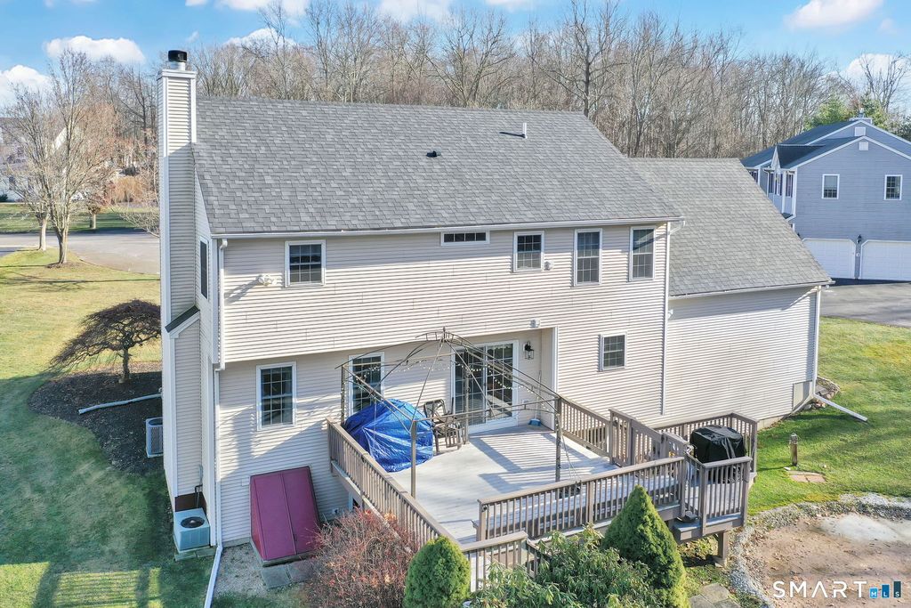 A Timeless Colonial in one of Wallingford's most desired neighborhood, this lovely 4 bedroom, 2.5-bath home in Wallingford Chase at Terrel Reserve is perfectly positioned on a peaceful cul-de-sac backing up to open space. Step inside to a beautifully remodeled kitchen showcasing a central island, granite countertops, & new Stainless Steel appliances. This space opens seamlessly to the warm & inviting familyrm, highlighted by a cozy wood burning fireplace-perfect for both everyday living & entertaining. The livingrm features A custom built-in desk which creates an ideal home workspace & the formal dining room offers an elegant setting for gatherings & special occasions. From the kitchen, sliders lead to a Trex deck that overlooks a private, tree-lined backyard with a fire pit for relaxing evenings outdoors & a shed for extra storage. The exterior features maintenance-free vinyl siding and a two-car garage, adding both convenience & long-lasting curb appeal. The lower level offers even more versatility with finished space suitable for a recreation area, home gym or hobbies, along with plenty of storage. On the upper level, 4 generously sized bedrooms & 2 full baths provide comfort & convenience for everyone. The bright & spacious primary suite serves as a serene retreat, complete with a full bathroom featuring a luxurious soaking tub & a separate shower. Additional features include a new Roof 2023, New Boiler 2023 w/3 zone heat, 2 zone CAIR & 2nd flr central air unit is 2022