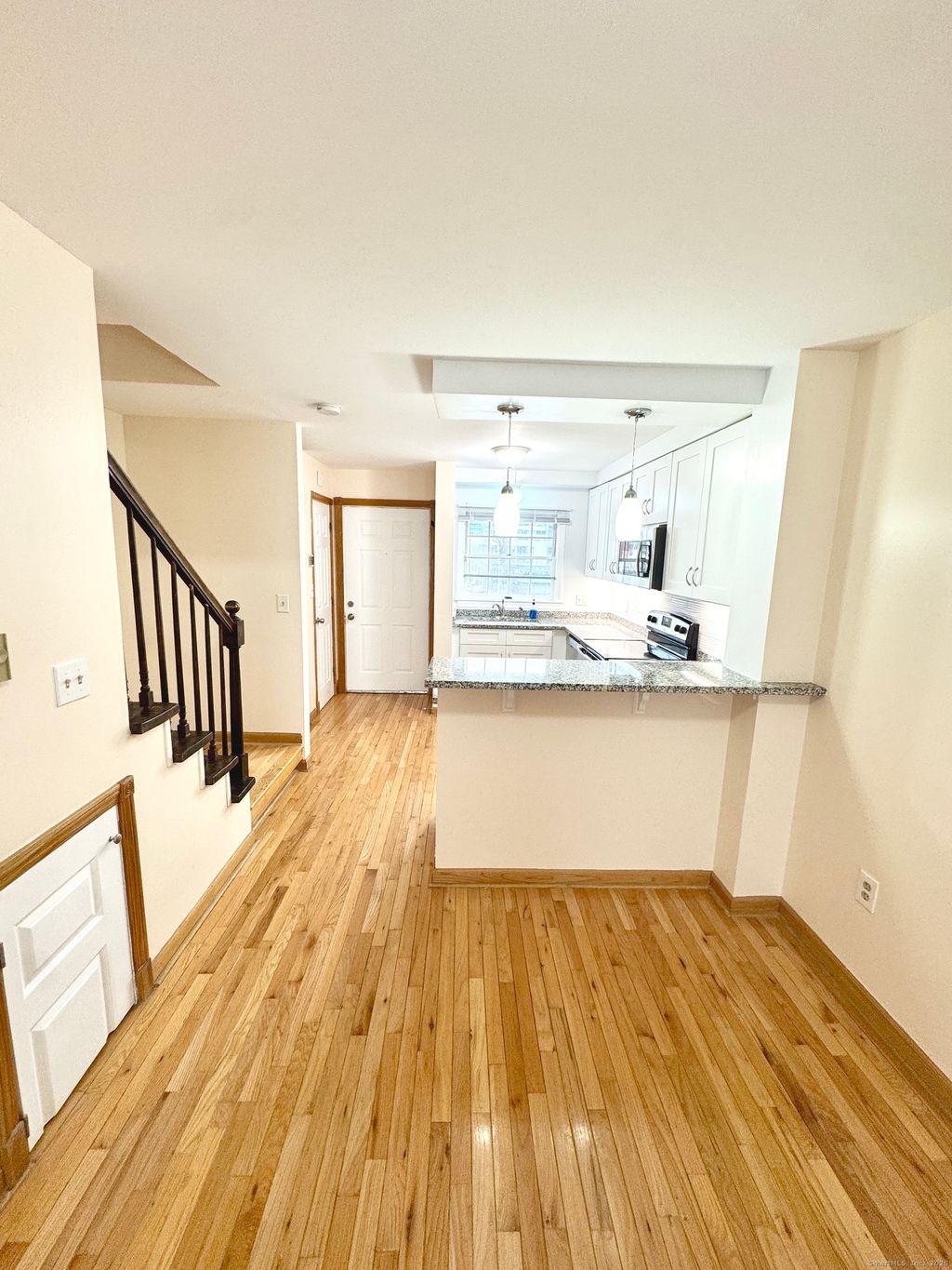 Welcome home to this wonderful 2 bedroom, 1.5 bath unit located in the heart of Harbor Point. The unit has been freshly painted, cleaned and has many updates. Light-filled, updated kitchen features ample cabinet space, stainless steel appliances and granite countertops. Also features a large pantry or storage/coat closet. Step into the large combo dining/living area with newer light fixtures. Gleaming hardwood floors throughout. Convenient half-bath on main level. The second floor features a sunny and large primary bedroom with generous closet space. Secondary bedroom also has ample closet space. Full bath in hallway. In unit Washer/Dryer. This unit comes with two assigned parking spaces, and a storage cage in the shared basement. This location is convenient to the vibrant Harbor Point area, shops, restaurants, moments to the train station & 95, as well as downtown Stamford. Space, Convenience & a vibrant location!