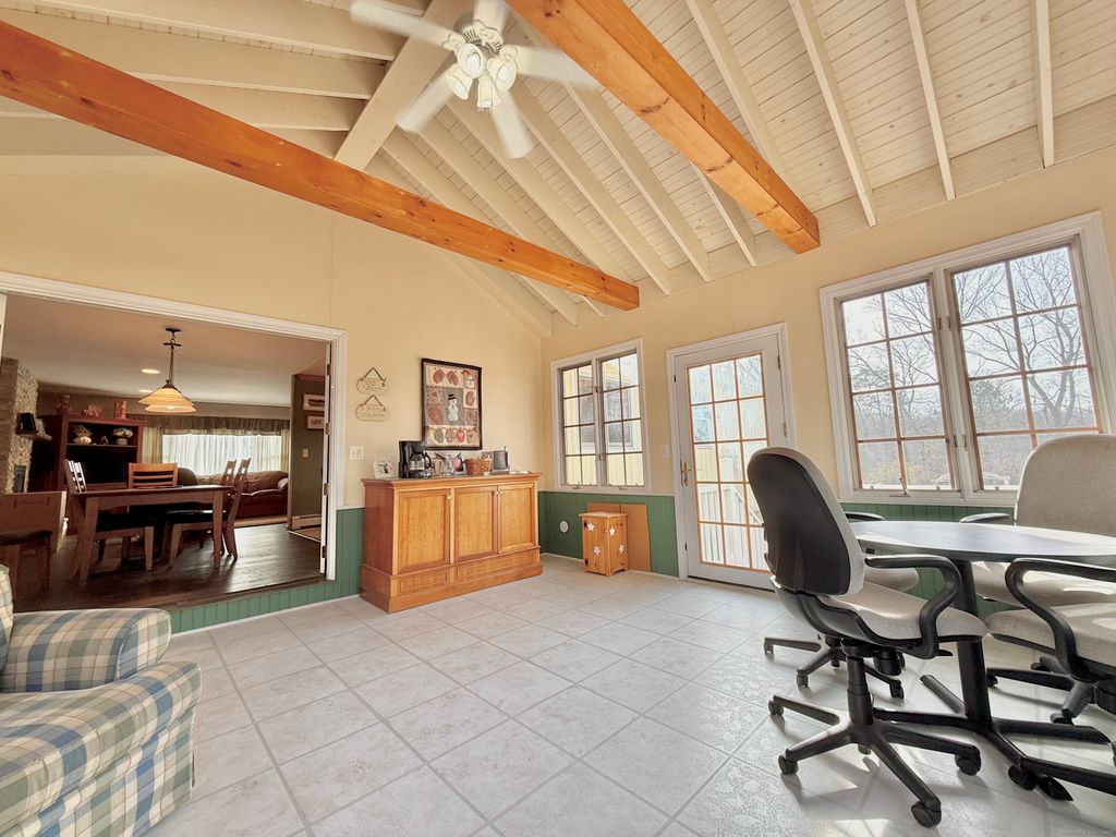 Not your typical Raised Ranch! Set along scenic Shelton Road in Oxford's Moose Hill neighborhood, this thoughtfully maintained 3 bedroom home offers space and warmth. On a 1.69 acre level lot, the setting is peaceful and picturesque, Belinsky Farm just steps away and views that change beautifully with the seasons. The home unfolds with inviting living spaces designed for both everyday comfort and entertaining. A modern stone fireplace anchors the main level, while the kitchen features granite countertops and flows seamlessly into a spacious sunroom, not included in the living square footage. This sun filled retreat quickly becomes a favorite gathering place with Cathedral ceiling. Additional finished areas, including a recreation room created from the former under house garage, an office/exercise room, and a full bath with laundry on the lower level, the total usable space is just under 2,800 sq ft. A wood burning stove adds charm and heating efficiency. Recent updates include a 2019 roof, 2 large Renewal by Anderson bay windows, and a Trex deck overlooking the expansive, level, backyard. A deep, 1.5 car, detached garage provides added storage and convenience. Enjoy close proximity to Rock House mountain biking trails, Quarry Walk's shops, dining, and entertainment, and access to Jackson Cove, Oxford's resident only lakefront beach and rec area. Oxford has limited inventory, don't miss this opportunity to make Oxford your home!