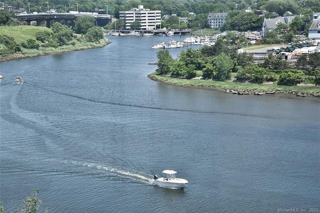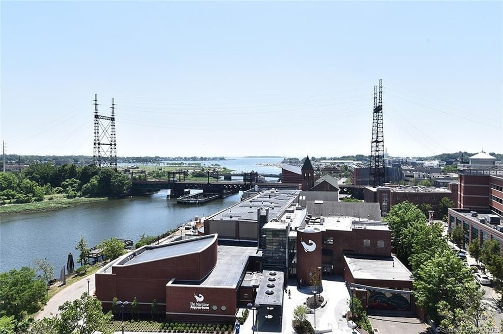 Experience wonderful water views of the Norwalk River, Norwalk Islands, and the Harbor from this beautifully situated 6th floor residence. Nestled in the heart of vibrant and historic SoNo, you're just steps from Washington Street's acclaimed international dining scene, art galleries, the Maritime Aquarium, public dock, unique retail boutiques, and the SoNo Collection Mall. Outdoor enthusiasts will appreciate easy access to Oyster Shell Park-as well as nearby biking, walking, and jogging paths, all the way to Calf Pasture Beach and beyond. Inside the unit, soaring 9'6" ceilings and oversized 8' windows fill every room with natural light and panoramic water views. Enjoy your own private balcony, perfect for morning coffee or evening relaxation. Building amenities include a fully equipped fitness center, a recreation room with kitchenette and fireplace, a conference room, an underground parking garage plus a reserved outdoor parking space. Pet-friendly, please inquire. Just a short walk to the SoNo Mall for shopping, and the SoNo Train Station for easy commuting.