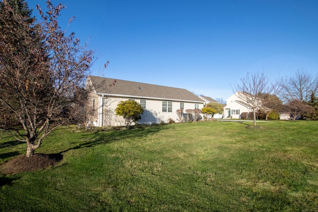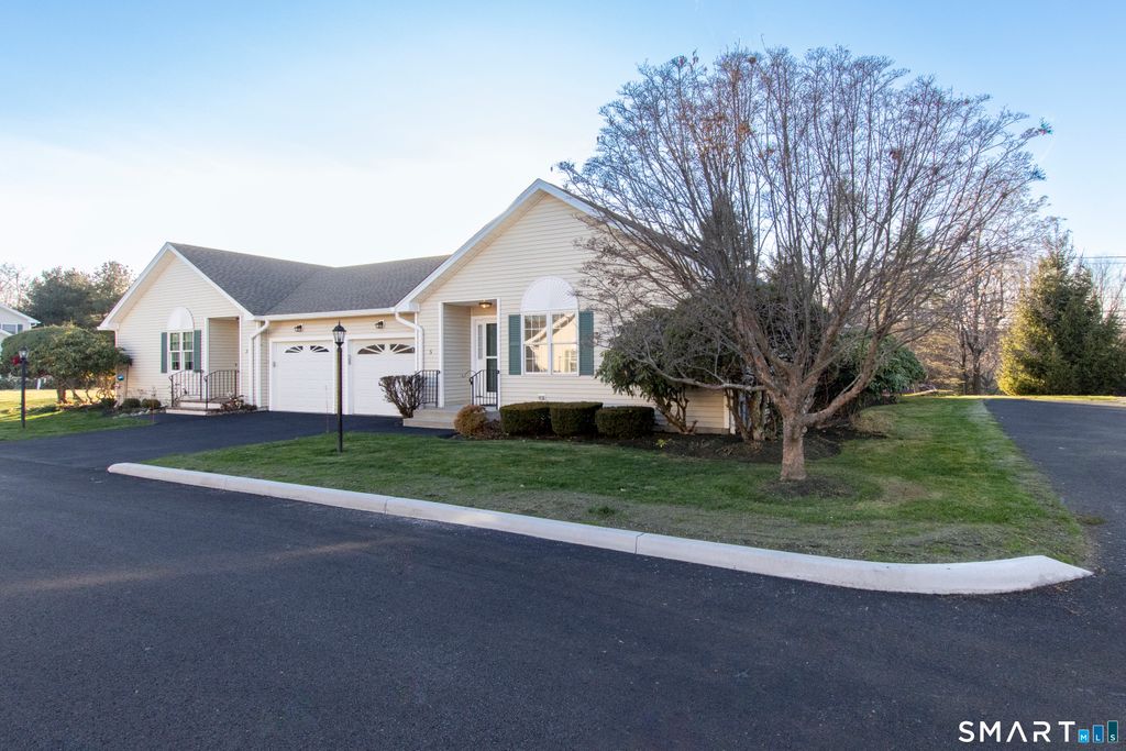 This gorgeous, sun-splashed end-unit ranch in Trumbull's sought-after 55+ Long Hill Village offers beauty, convenience, and easy, low-maintenance living! Features include an updated kitchen with quartz counters, minimal-step entry one-level living, 2 fully updated baths, vaulted ceilings, hardwood floors throughout, and a huge, full basement for all your storage needs. The spacious dining room living room combination features a gas-operated fireplace, vaulted ceilings, and access to a sunny composite deck (furniture and accessories included) overlooking the private, grassy yard. This home is ideal for downsizing without sacrificing space or lifestyle. The gorgeous eat-in kitchen with hardwood floors features ample upgraded cabinetry and space for a breakfast table. The primary suite includes a walk-in closet and a full bath with a step-in shower, while the second bathroom offers a tub/shower combo. Both baths feature granite-topped vanities. A main-level laundry area and the direct garage access add everyday ease. Enjoy peace of mind with a newer roof, driveway, central air, and efficient natural gas heat. A beautifully landscaped exterior surrounds the home, adding charm and curb appeal. Just a few doors away, the clubhouse features a full kitchen, seating tables, and hosts resident events and clubs, as well as a terrific space where owners can reserve the hall to host their own private parties.