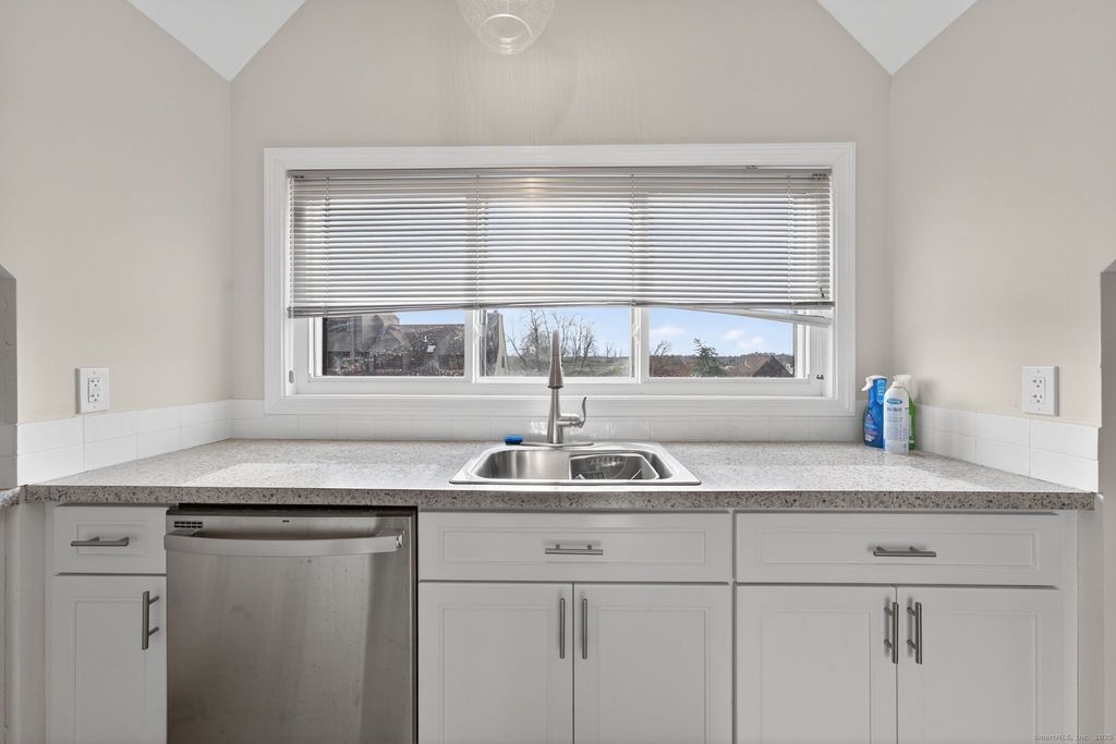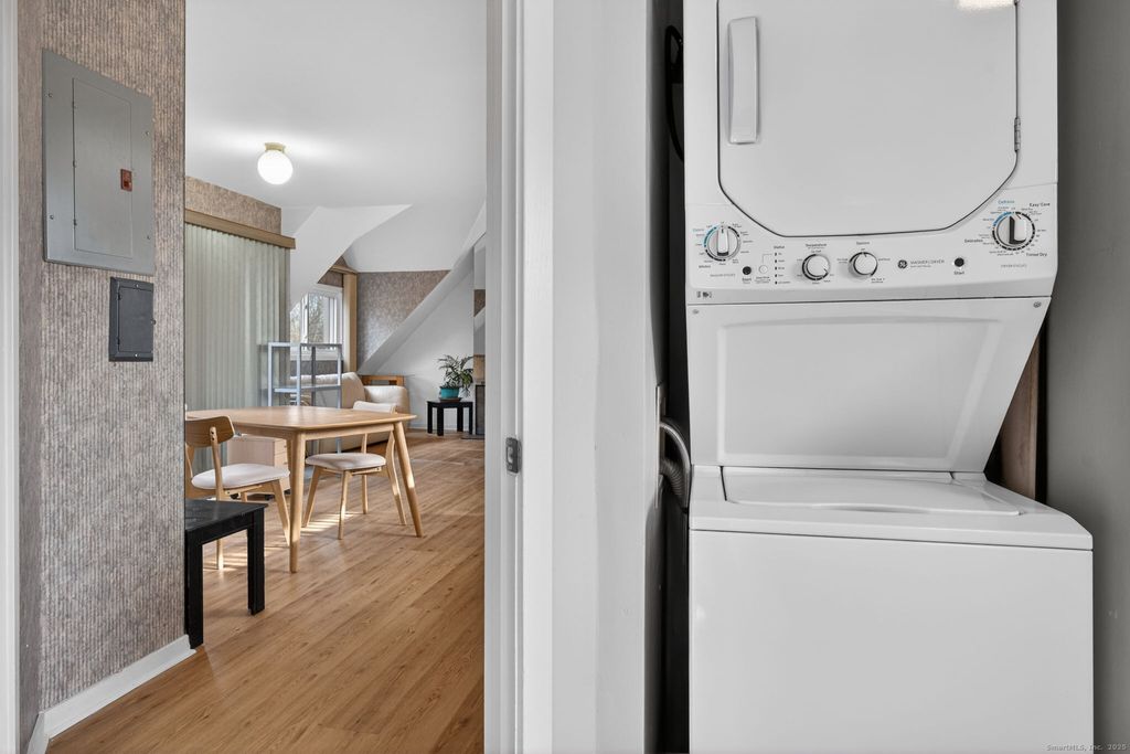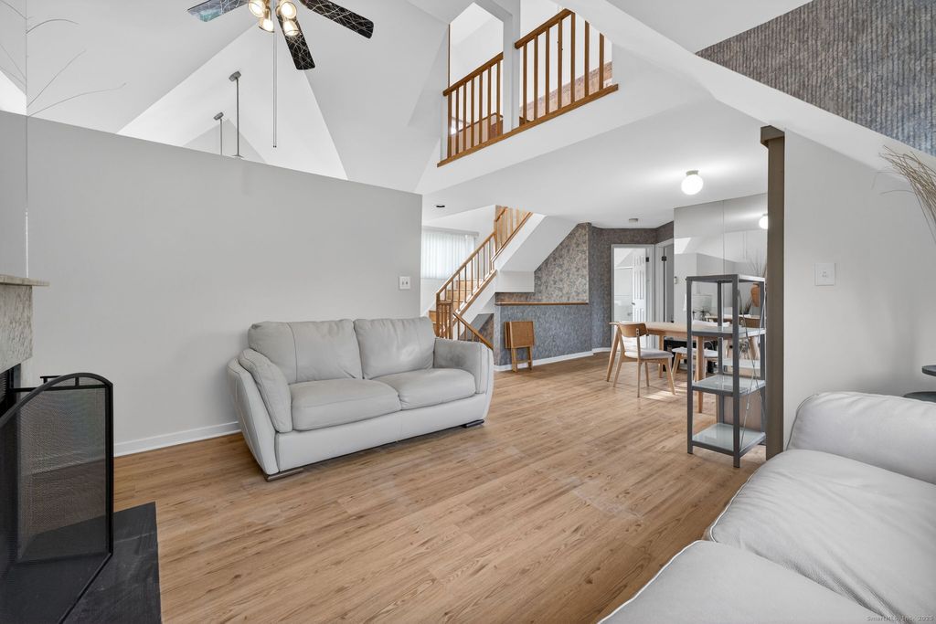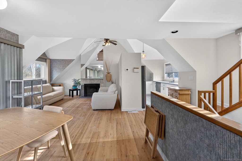 Welcome home to this beautifully updated 2-bed, 1-bath townhouse-where modern comfort meets resort-style amenities! Step inside and you're greeted by soaring ceilings, warm hardwood floors, and an open, airy layout that makes every space feel inviting. The living room flows seamlessly into the dining area, creating the perfect setup for hosting friends or enjoying a quiet night in. The updated kitchen shines with crisp white cabinetry, stainless steel appliances, and generous counter space-ideal for meal prep, midnight snacking, or showing off your inner chef. Upstairs, the spacious loft-style primary bedroom offers dramatic vaulted ceilings and great natural light, while the second bedroom provides a perfect guest room, office, or flex space. The remodeled full bathroom features double vanities and modern finishes, giving you that "spa-day" feeling without the appointment. You'll love the convenience of in-unit laundry, plus a 1-car detached garage for sheltering your vehicle from New England weather. And when it's time to unwind? The community has you covered with a sparkling pool and tennis courts-your very own mini-vacation without leaving home. Stylish, spacious, and move-in ready... this townhouse checks all the boxes. Come see why life is just better here!