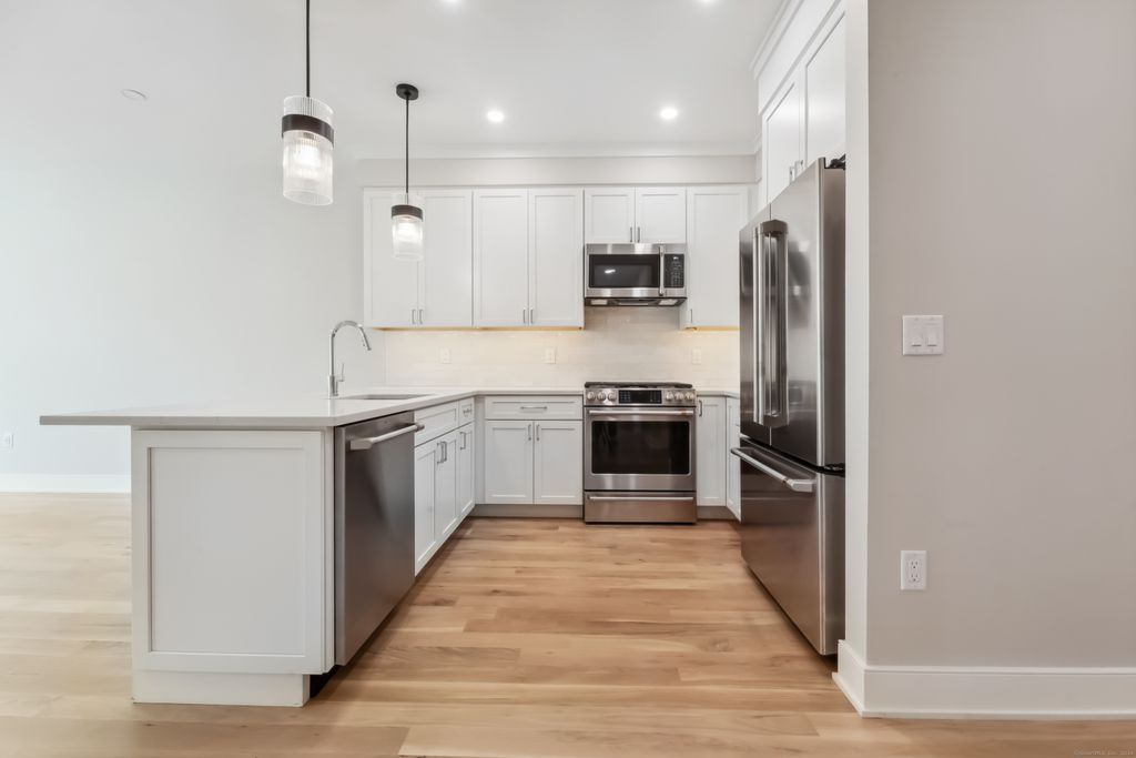Discover boutique-style living at Husted Commons, where timeless elegance meets contemporary design in a prime downtown New Canaan location, just 50 miles from NYC. Enjoy easy access to the Metro-North train station, Main and Elm streets, and a wide array of retail and dining options. This distinctive new complex built in 2024 features 12 residences, offering one-bedroom, two-bedroom, and two-bedroom loft options. The loft residences feature private rooftop decks. Each unique residence boasts open layouts that flood with natural light, soaring 9+ foot ceilings, and beautiful white oak flooring. Experience chef-inspired kitchens equipped with custom cabinetry, premium appliances, and quartz countertops. Master bedroom suites are designed for comfort, complemented by bathrooms with heated floors. Enjoy the benefits of smart home technology, in-residence washers and dryers, private security system, and custom solar shades for added convenience. Husted Commons also features elevator service, private balconies or terraces in select residences, reserved underground and courtyard parking for two cars with car charging stations, and inviting outdoor green spaces, making it the ideal choice for in-town living!