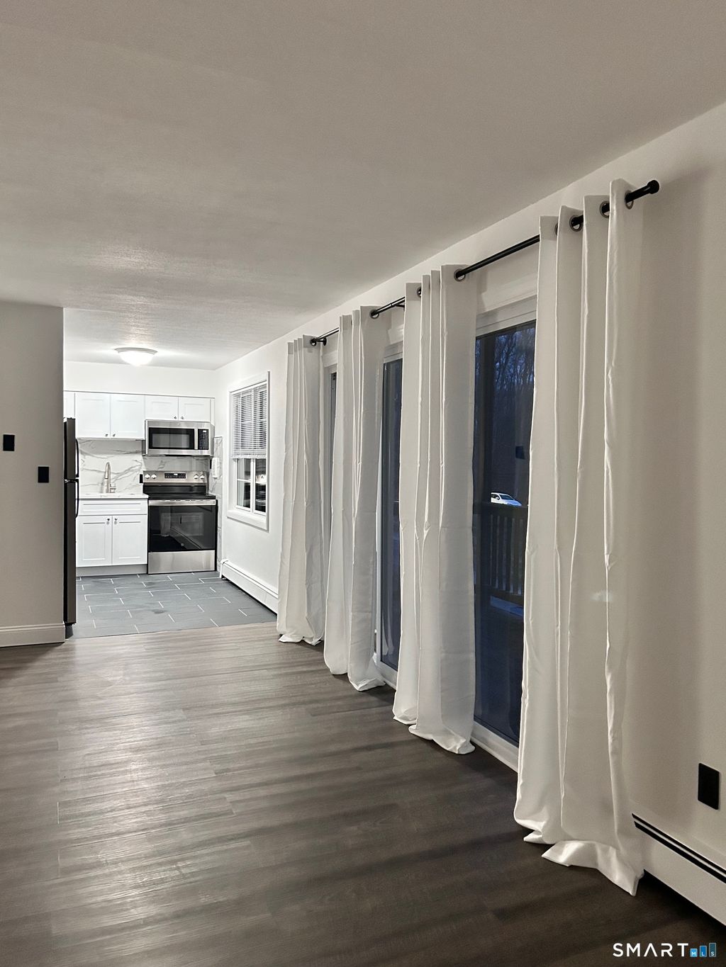 Step into this fully updated/modern and well maintained single-level condo featuring two bedrooms, a full bath, and open living/dining area. Enjoy a spacious kitchen and attached basement. Nestled in a serene, lightly wooded complex with shared laundry, and coin-op basement facilities. Single car garage also included with ample parking in the condo complex. Tenant only pays for electricity and internet. Great location and just minutes from I84/I691. Central location with a quick ride to New Haven, Hartford, Fairfield county, and NY. Top-rated schools, shopping, and restaurants. Set up your showing ASAP! This will rent fast!