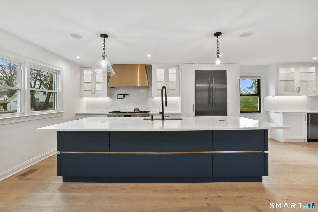 Beautifully Updated Stratfield Colonial for Rent - 4BR, 3.5BA, Stunning Outdoor Oasis & Flexible Living Spaces. Welcome to 86 New Street, a beautifully renovated home in Fairfield's desirable Stratfield neighborhood. Thoughtfully updated by the current owner, this turnkey residence offers modern amenities, an open and inviting floor plan, and exceptional indoor-outdoor living. The new kitchen features custom cabinetry, stainless steel appliances, quartz countertops, and a massive island. All open to the living and dining spaces. A renovated powder room, and a convenient first-floor laundry room complete the main level. Upstairs, you'll find four bedrooms, including a serene primary suite with a completely remodeled bath and a walk-in closet with custom built-ins. The finished lower level provides bonus space ideal for play, workout, or media use. The renovated garage area now includes a full bath, making it ideal as a studio, office, guest space, or overflow entertaining area. Step outside to your private backyard escape-an incredible patio with a pergola, grill, and hot tub, creating a true outdoor retreat. Additional highlights include walk-up attic storage and ample parking. New Street is an ideal location convenient to Black Rock Turnpike, Stratfield Road and all that Fairfield has to offer.