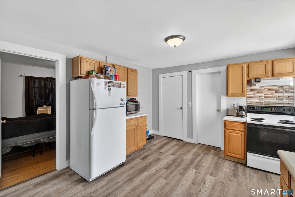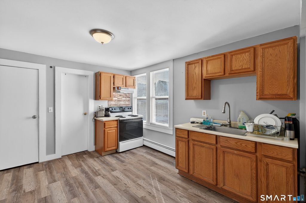 Excellent opportunity for investors or owner-occupants! This well-maintained two-family home offers flexibility and value. The first-floor unit features an eat-in kitchen, two bedrooms, a living room, and a dining room with gleaming hardwood floors, along with an updated bathroom (2020). The second-floor unit offers a spacious open-concept kitchen with new flooring, a living room, an updated bathroom, and two bedrooms. Additional highlights include a walk-up attic providing ample storage and a roof that is just three years old-making this a solid long-term investment or an ideal option for those looking to live in one unit while generating rental income. Conveniently located near hospitals, restaurants, and the highway