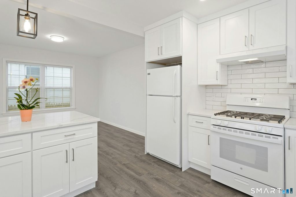 Brand new from the studs up, remodeled 2BR, 1.5 bath townhouse. Every detail has been reviewed. Plenty of natural light, spacious living room with recessed LED lighting, brand-new vinyl flooring that flows seamlessly into a formal separate dining area. The beautifully designed eat-in kitchen features white quartz countertops, New soft close premier tall cabinets, subway tile backsplash, large white quartz breakfast island, and all new appliances, including gas cooking. The owner/designer has meticulously renovated every detail for elegance. Enjoy gas heat, central air, new LED efficient light fixtures, freshly painted throughout, and a luxurious walk-in shower with custom glass doors and modern tile work. Both bedrooms are generously sized, and each offers rare oversized custom walk-in closets. Additional conveniences include a remodeled half bath on the main level, custom designed panel doors for the laundry room, and two included parking spaces in front of the unit. Located in the heart of Glenbrook walk to the train, restaurants, cafes, shops, and nightlife. Property manager is always present. Located minutes to downtown Stamford and directly on the Darien border. A must-see rental opportunity.