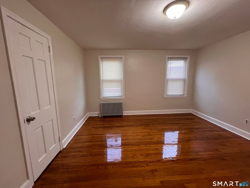 First-floor apartment, freshly painted and well maintained. Features gleaming hardwood floors with a fresh polyurethane finish, a newly updated bathroom floor, and new light fixtures throughout. Beautiful cabinetry with granite countertops, ample-sized bedrooms, and plenty of closet space. Includes a formal dining room and laundry hookups located in the basement. One off-street parking space is included. Garage parking is available at an additional cost. Tenant to help with snow removal.